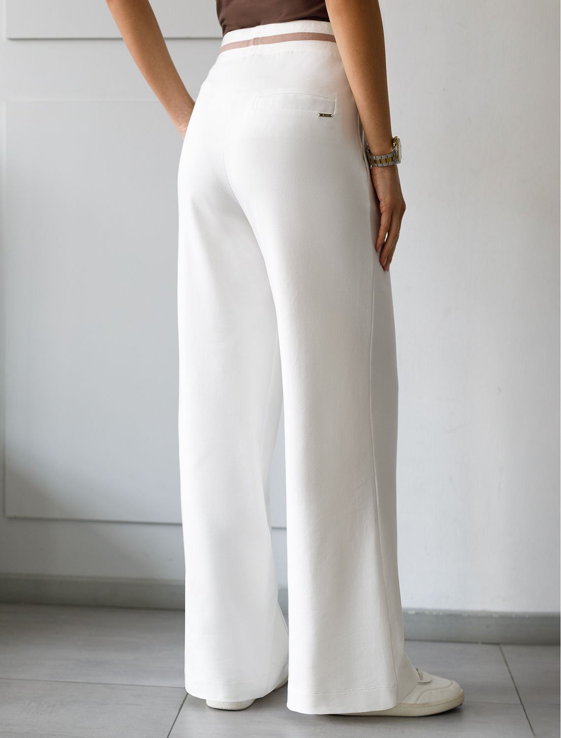 Брюки прямые со стрелками из премиального футера двухнитки с эластаном D44.168 белый