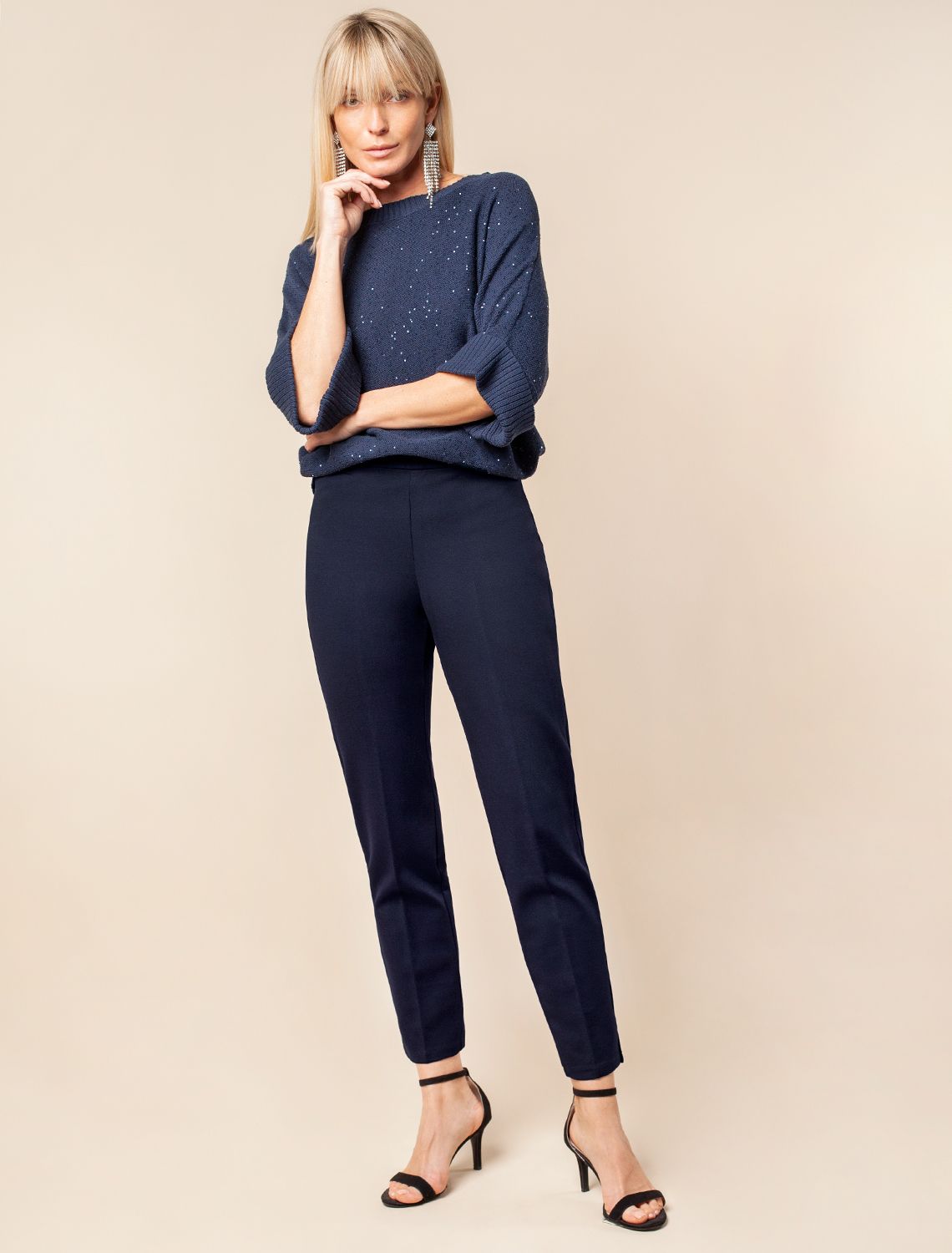 Брюки "дудочки" из плотного джерси D44.037 синий