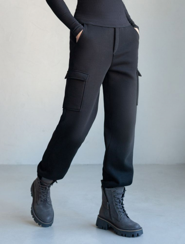 Брюки джоггеры теплые из футера трехнитики c начесом D44.151 черный