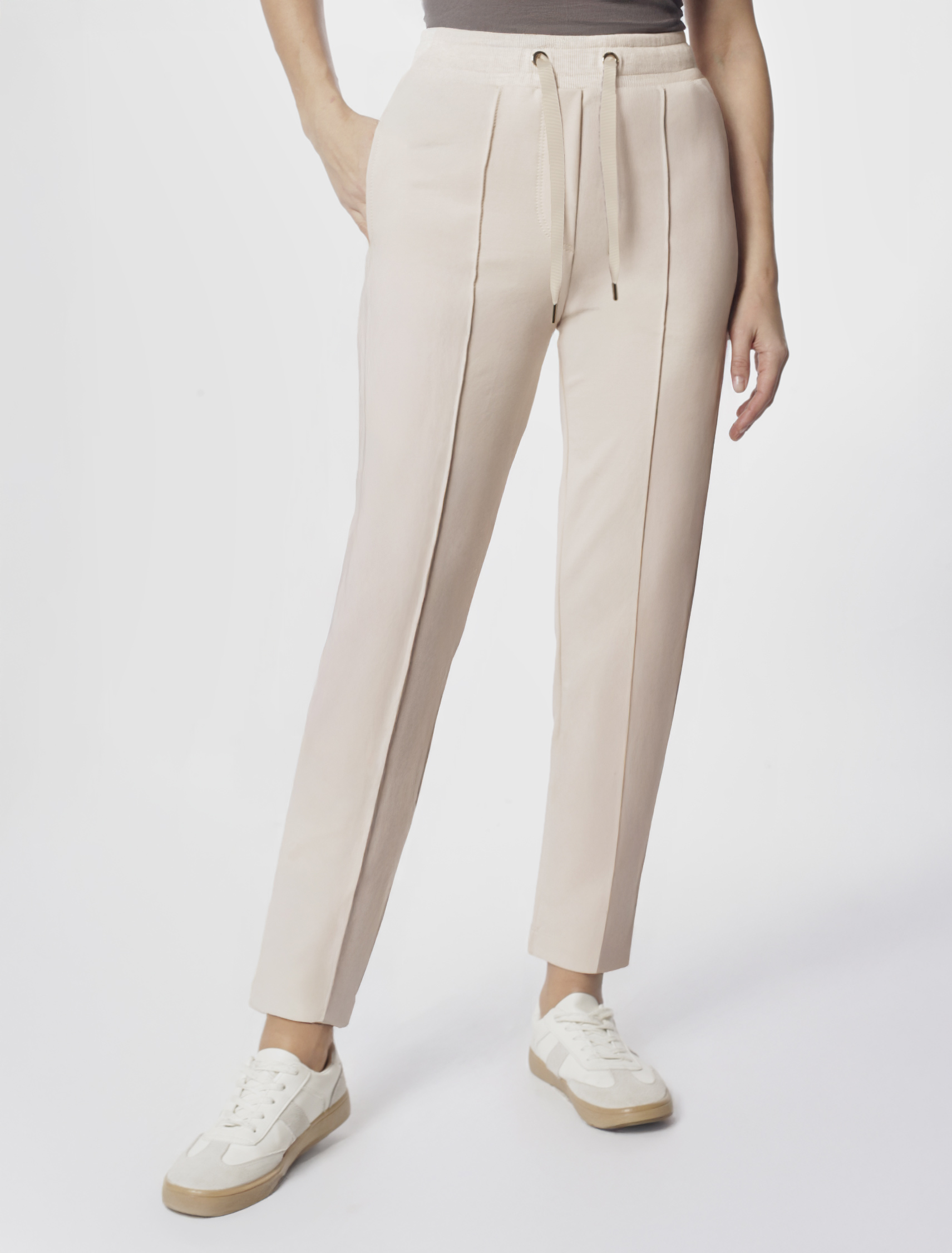 Брюки выполнены из эластичного футера-двухнитки. Модель дополнена застроченными стрелками, что визуально вытягивает силуэт. Эластичный пояс на резинке с хлопковым шнурком и металлической фурнитурой. Брюки сочетаются в костюме с футболкой D49.031 и бомбером D49.038 75%Хлопок 20%ПЭ 5%ПУ