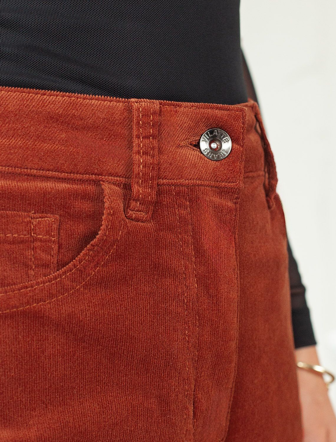 Брюки свободного кроя «трубы» выполнены из мягкого хлопкового микро-вельвета с добавлением эластана. Изделие комфортно садится по фигуре и не сковывает движения. Модель с пятью карманами, как у джинсов дополнена высококачественной фурнитурой с фирменным логотипом бренда. Идеально впишутся в повседневный образ, со свитером крупной вязки, курткой-косухой, ботинками на грубой подошве, челси и казаками.