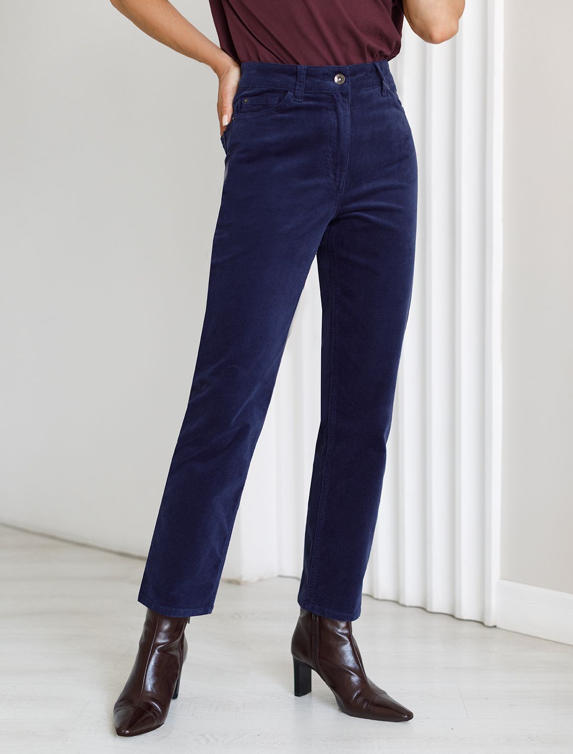 Вельветовые брюки женские зауженные в фасоне мом слим станут идеальным дополнением к теплому образу осенью и зимой. Они выполнены из мягкой хлопковой эластичной ткани, которая обеспечивает комфорт и защищает от холода.