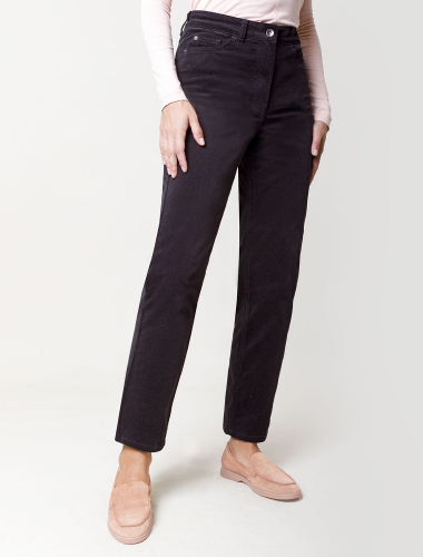 Брюки скроют недостатки фигуры, вытягивают силуэт и удлиняют ноги, благодаря завышенной талии. Пять карманов, как у джинс, добавляют функциональности, а высококачественная фурнитура гарантирует надёжность. Актуальная однотонная расцветка позволит легко комбинировать штаны с другими вещами из гардероба. Брюки джинсы хорошо комбинируется с вязаным трикотажем, блузками и денимом. Как альтернатива классическим брюкам, в нестрогий офисный дресс-код.