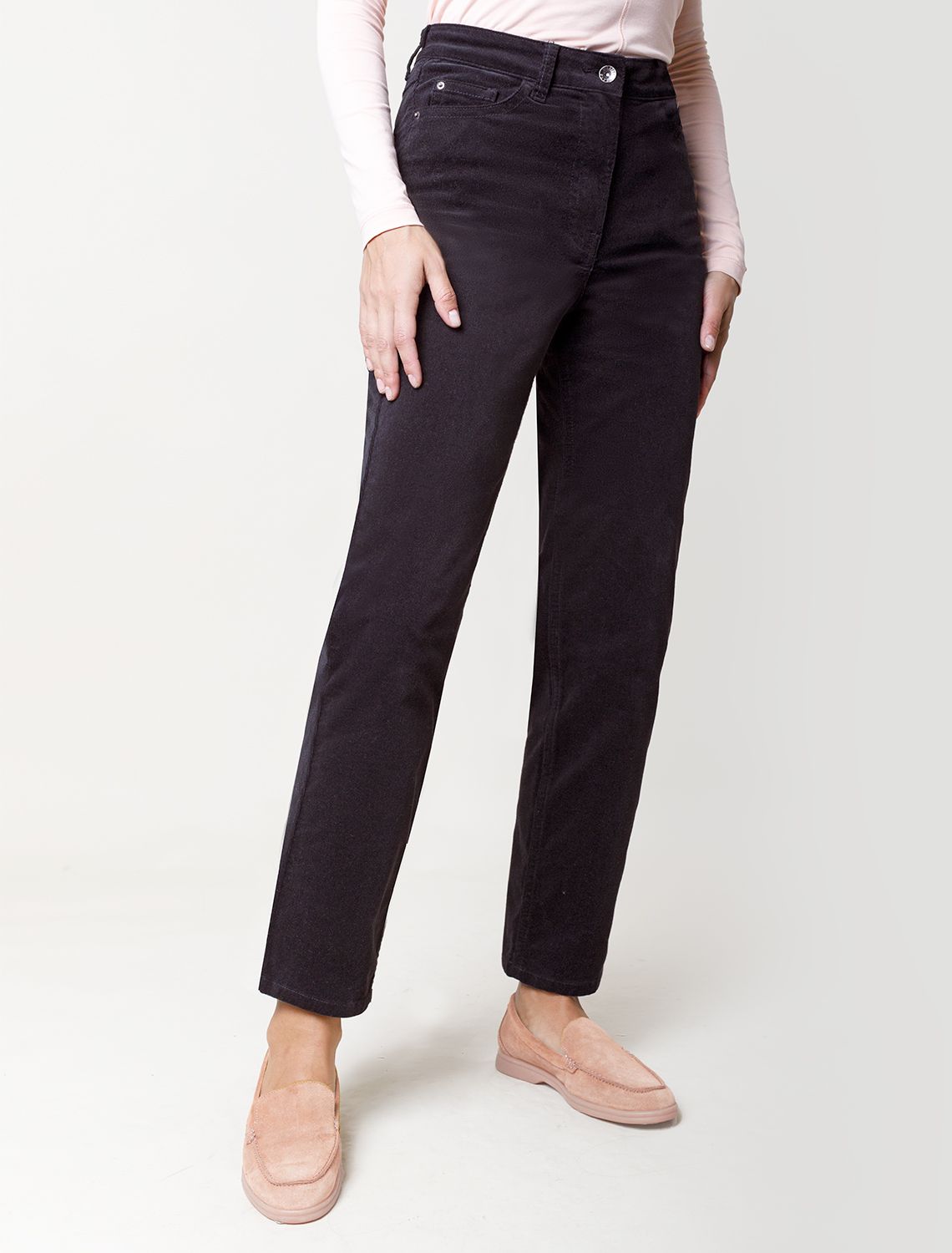 Укороченные эластичные брюки слим из микро вельвета