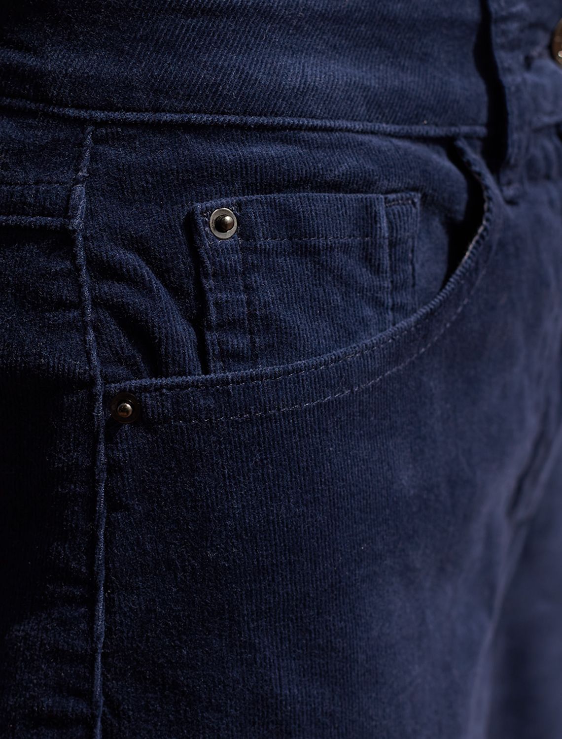 Брюки свободного кроя «трубы» выполнены из мягкого хлопкового микро-вельвета с добавлением эластана. Изделие комфортно садится по фигуре и не сковывает движения. Модель с пятью карманами, как у джинсов дополнена высококачественной фурнитурой с фирменным логотипом бренда. Идеально впишутся в повседневный образ, со свитером крупной вязки, курткой-косухой, ботинками на грубой подошве, челси и казаками. синий