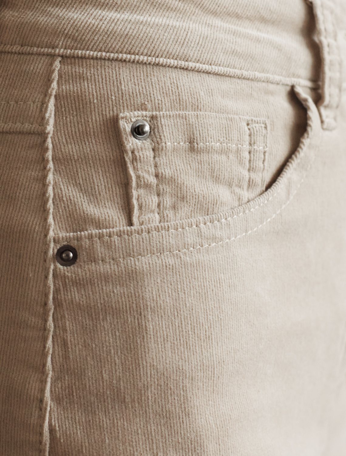 Брюки свободного кроя «трубы» выполнены из мягкого хлопкового микро-вельвета с добавлением эластана. Изделие комфортно садится по фигуре и не сковывает движения. Модель с пятью карманами, как у джинсов дополнена высококачественной фурнитурой с фирменным логотипом бренда. Идеально впишутся в повседневный образ, со свитером крупной вязки, курткой-косухой, ботинками на грубой подошве, челси и казаками. светло-бежевый