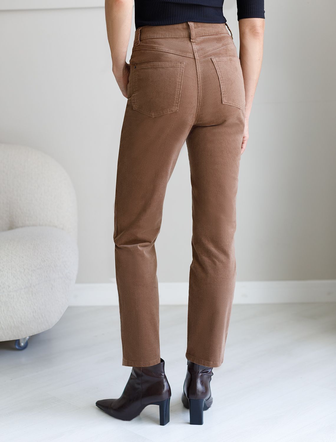 Укороченные эластичные брюки слим из микро вельвета D24.283 светло-кофейный