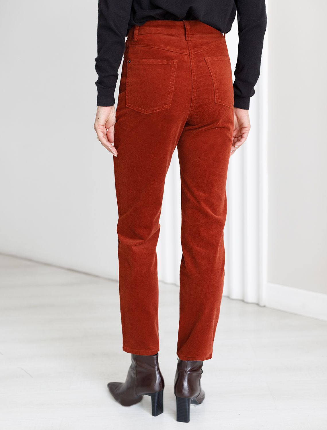 Укороченные эластичные брюки слим из микро вельвета D24.283 терракотовый