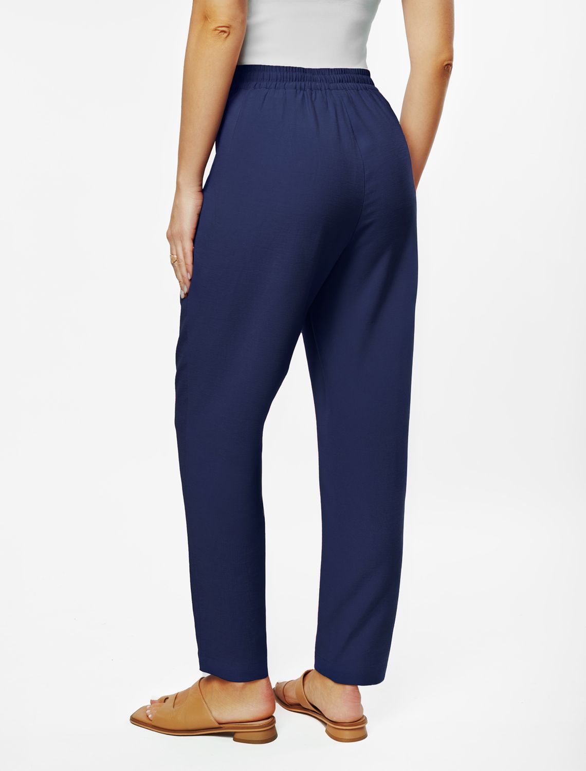Брюки выполнены из плотного лиоцелла. Модель дополнена карманами и поясом с эластичной резинкой и регулируемым шнурком с золотистой фурнитурой. Ткань изделия отлично держит форму, плавно драпируется и не просвечивает. В теплое время года приятно охлаждает кожу. Добавление синтетических волокон в составе изделия, предотвращает сминаемостьи поддерживает формоустойчивость. Брюки сочетаются в костюме с топом D23.063 и блузкой D29.266, D29.267 и жилетом D27.002 темно-синий