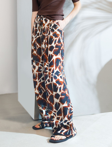 Брюки выполнены из вискозы с лиоцеллом. Изделие дополнено эластичным поясом с регулируемым шнуром. Ткань изящно блестит и приятно охлаждает кожу в жаркое время года. Модель сечетается в костюме с топом D23.062 и блузкой D29.263