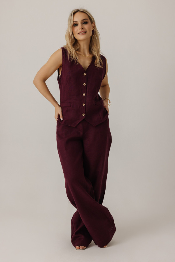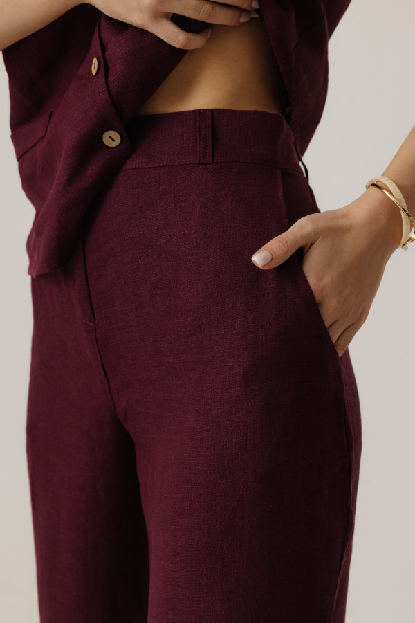 Брюки льняные 13-39 вишня2