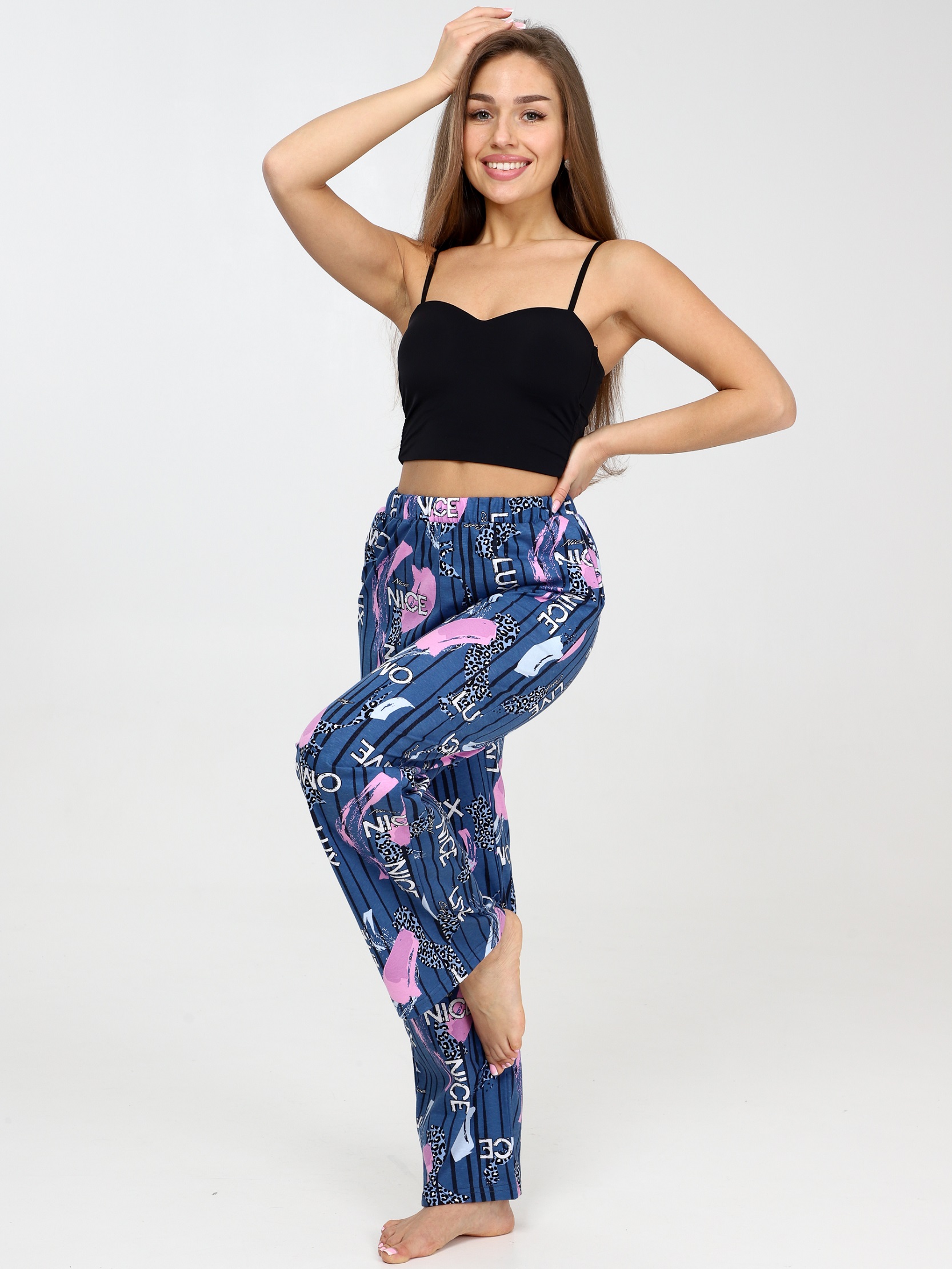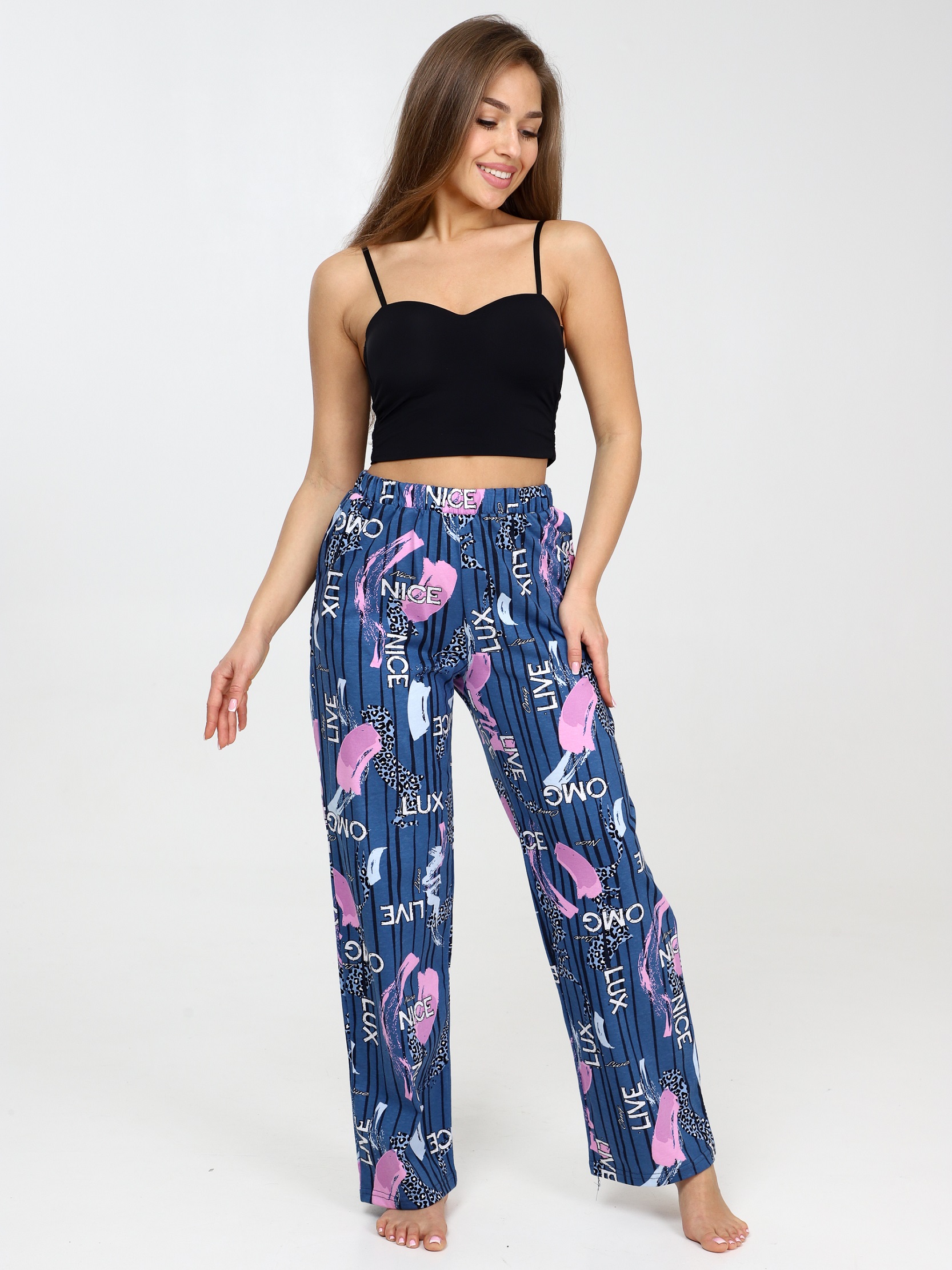 Женские домашние штаны имеют свободный силуэт, что обеспечивает комфорт и свободу движениям. Хлопковые пижамные брюки подойдут как для комфортного сна, так и для домашней носки, дачи.