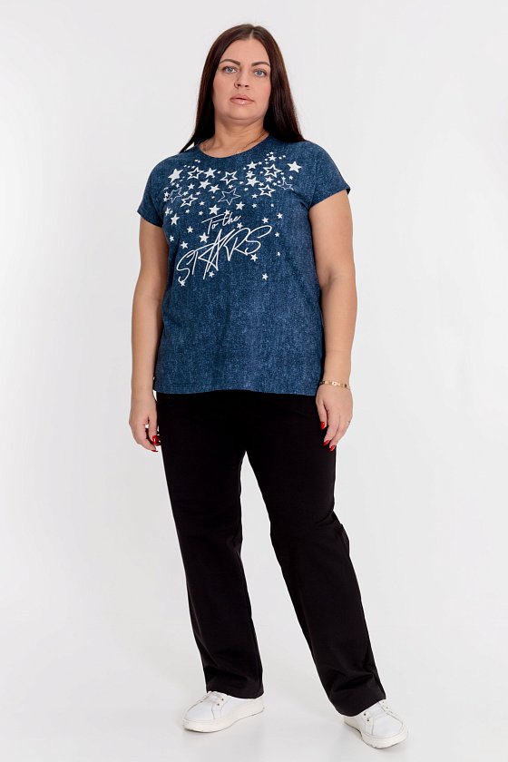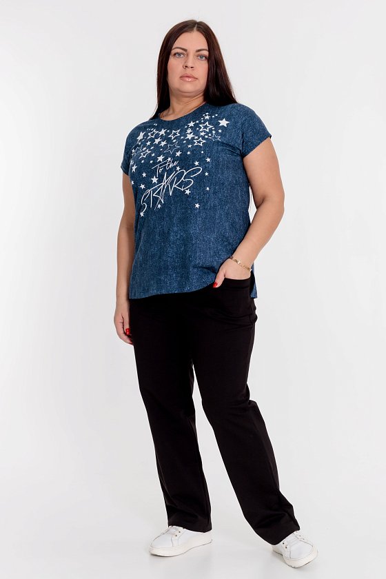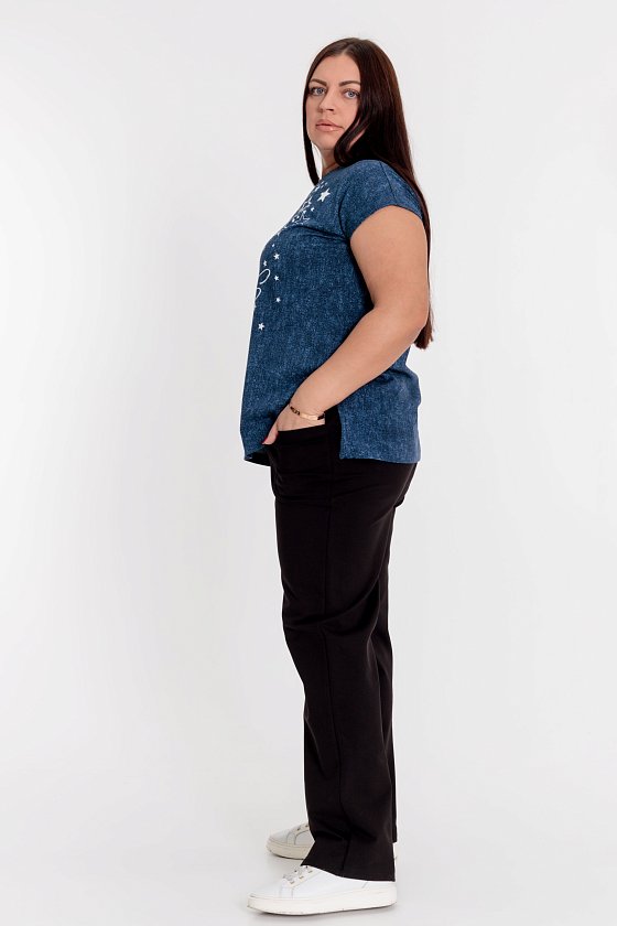 Брюки женские выполнены из однотонной футер петли с лайкрой, спереди расположены два кармана, пояс на резинке.