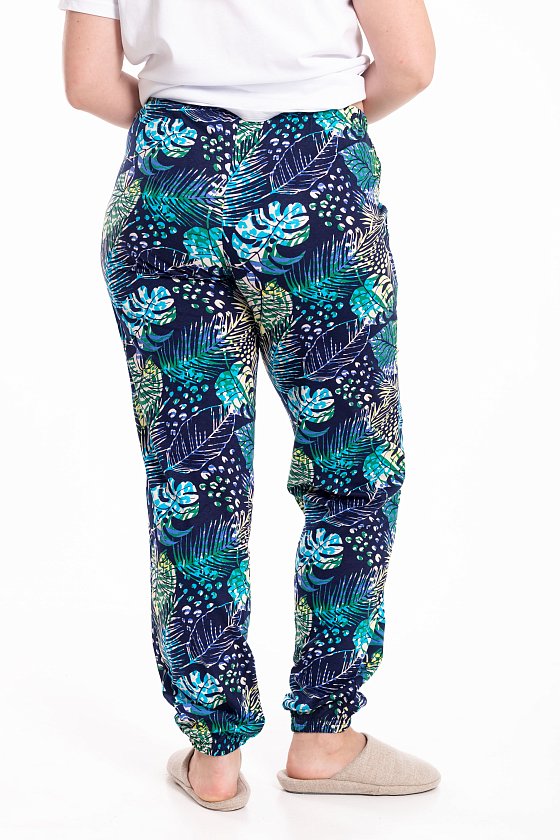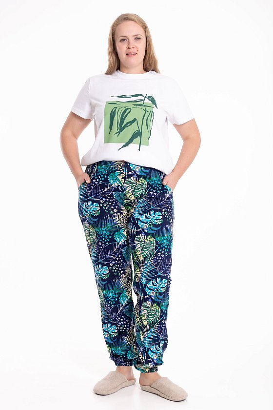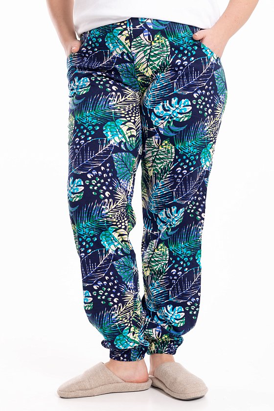Брюки выполнены из мягкой хлопковой ткани. Модель с удобным поясом и манжетами на резинке обеспечивает комфортную посадку и свободу движений. По бокам брюки дополнены карманами. Универсальный вариант для повседневной носки и отдыха.