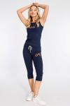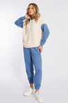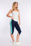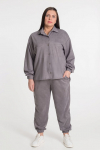 Спортивные брюки из футер петли с лайкрой. Зауженный покрой к низу, пояс на резинке, по бокам расположены карманы. Через петли в поясе продернут шнур. На передних частях манжет расположены нашивки.
