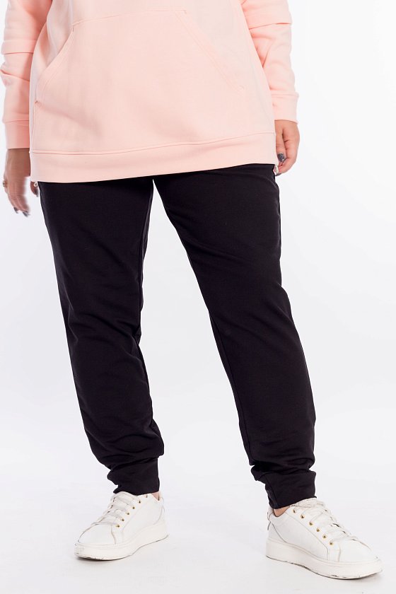 Спортивные брюки из футер петли с лайкрой. Пояс на резинке и эластичном шнуре. Боковые карманы на молнии. Низ брюк на манжетах.
