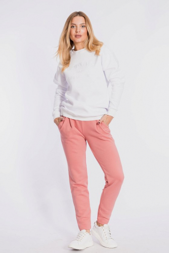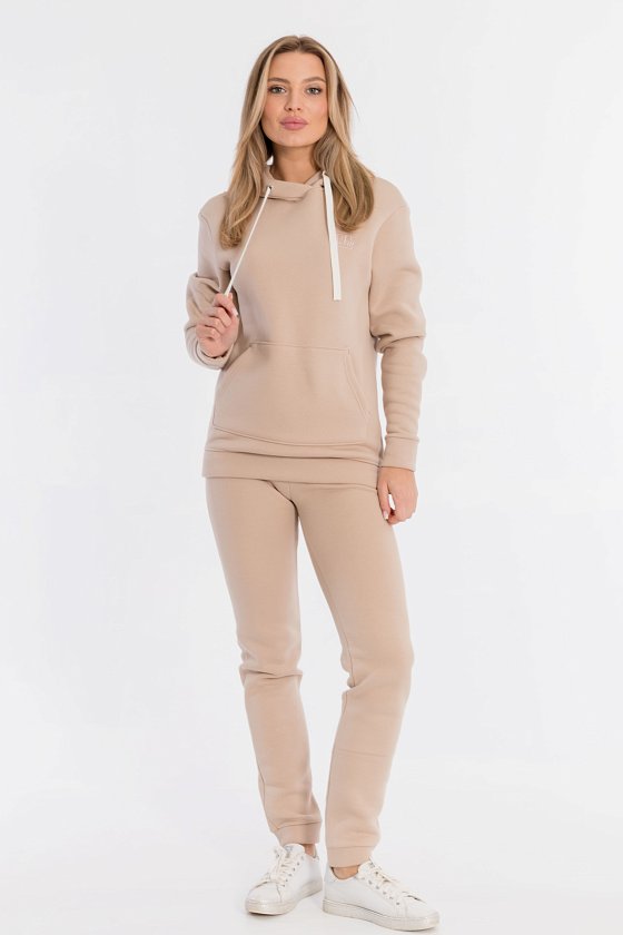 Брюки с поясом на резине и манжетами внизу. Выполнены из полотна с начёсом.