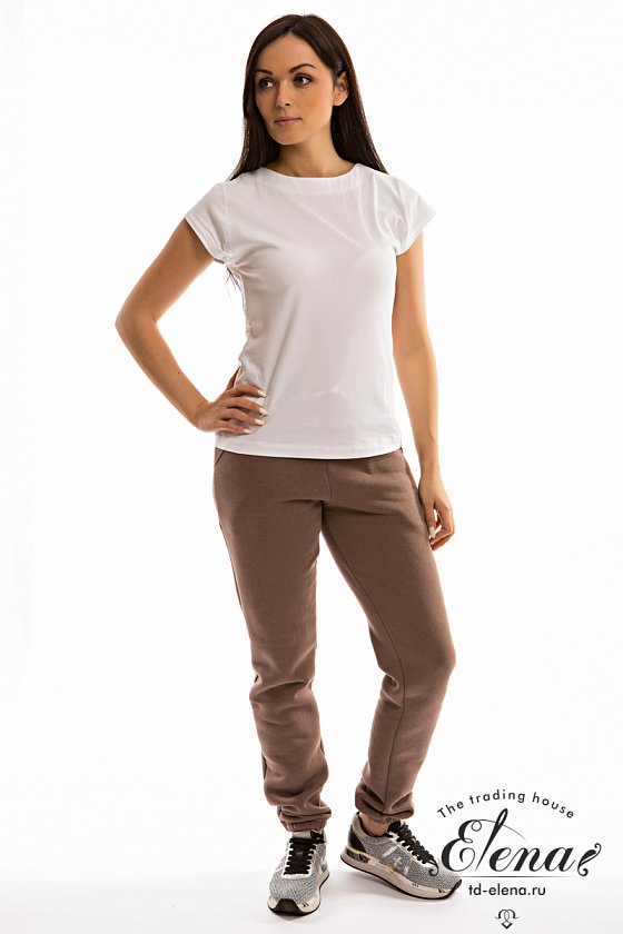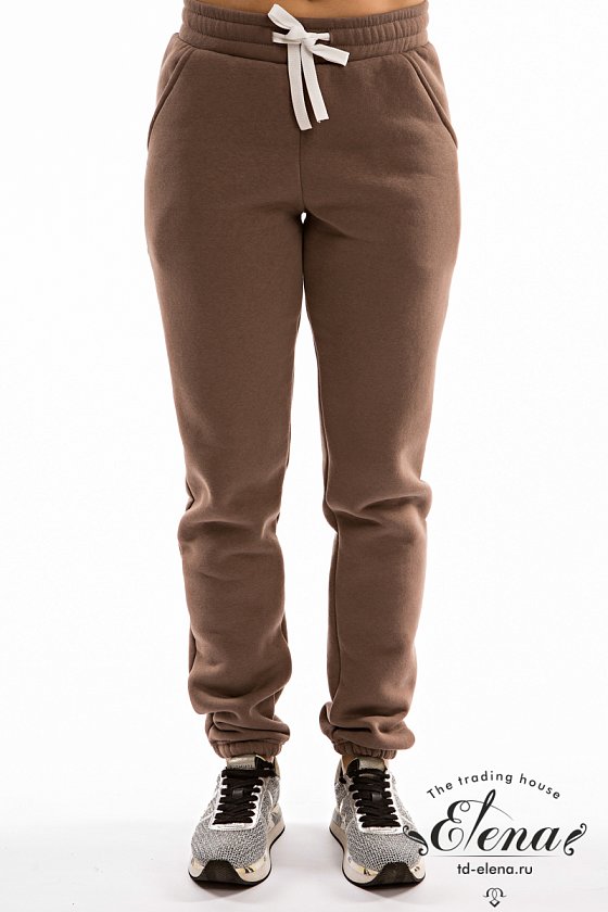 Брюки выполнены из полотна с начёсом (футер трёхнитка). По бокам размещены карманы, пояс и низ брюк на резине. Для дополнительной фиксации на талии используется шнур.