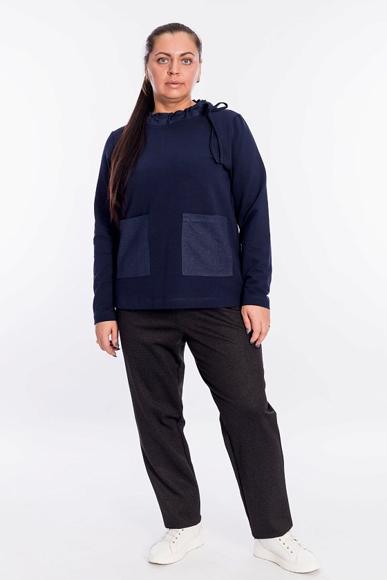 Брюки женские, зауженные к низу, выполнены из полотна академик. По бокам размещены два кармана, пояс на резине.