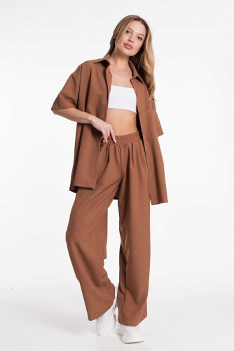Женские брюки — отличный выбор для повседневной носки. Они изготовлены из практичного и лёгкого однотонного материала «искусственный лён» коричневого цвета.