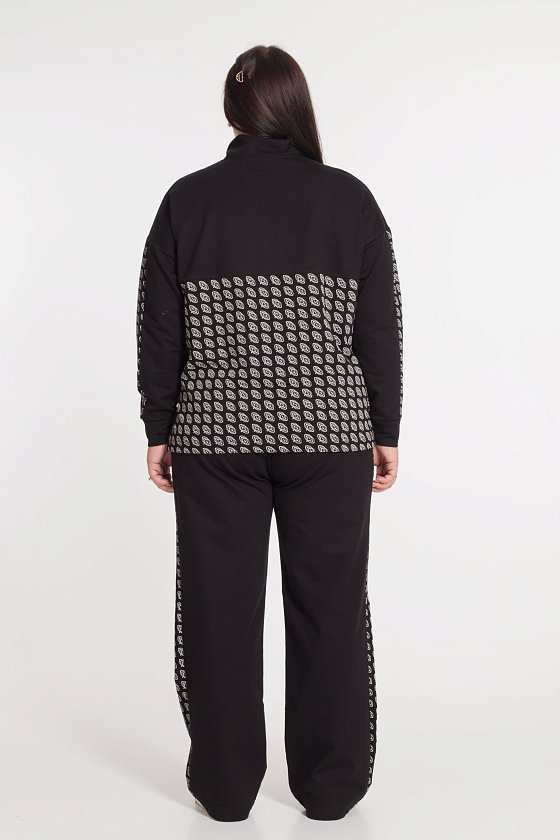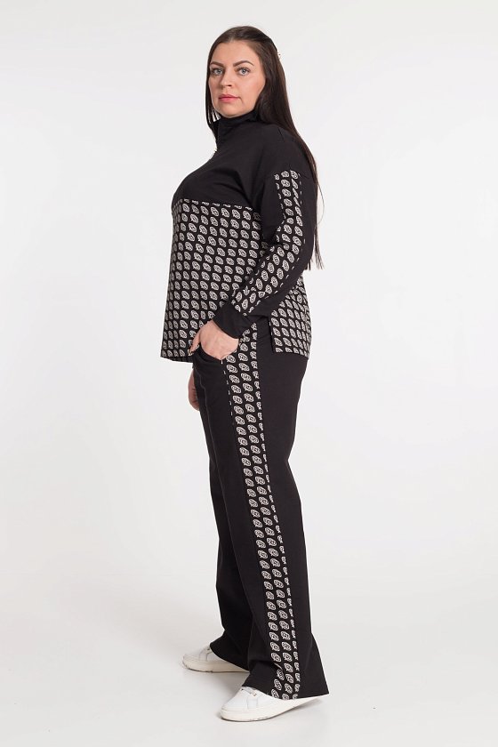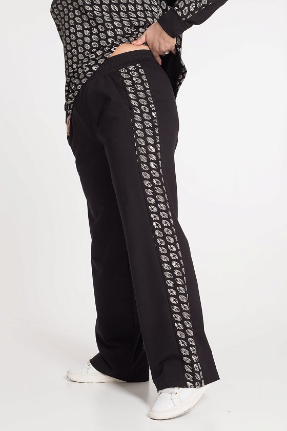 Брюки из футера с лайкрой, однотонные с отделочными полосами по бокам из футера с набивкой, прямые, свободные с боковыми карманами и притачным поясом.