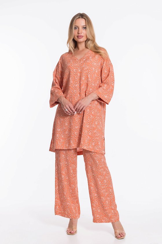 Женские брюки из вискозы свободного силуэта хорошо садятся по фигуре, а боковые карманы добавляют практичности. Широкий пояс на резинке обеспечивает комфортную посадку.