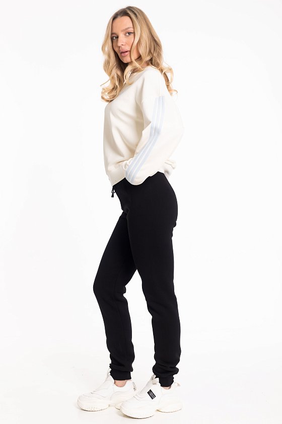 Брюки женские из полотна с начёсом. Низ брюк на манжетах, пояс на резине со шнуром.