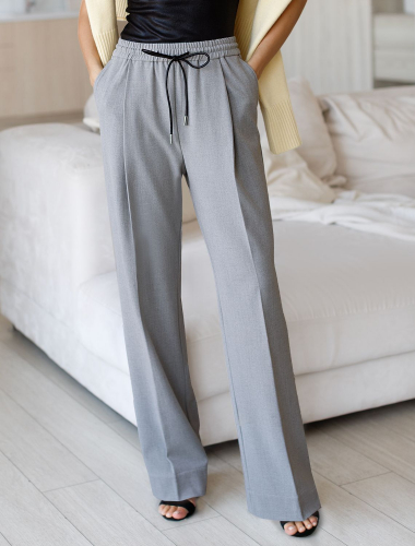 Брюки выполнены из хлопкового твила. Изделие дополнено двумя вариантами шлёвок, что позволяет использовать ремни разной ширины. Модель имеет два боковых и один задний карман. Защипы у пояса и стрелки вдоль брючины визуально вытягивают силуэт и подчеркивают талию. Благодаря наличию эластана в составе изделие сохранит свой безупречный внешний вид в течение долгого времени. Обладает высокой воздухопроницаемостью, в брюках будет комфортно даже в жаркое время года. темно-бежевый
