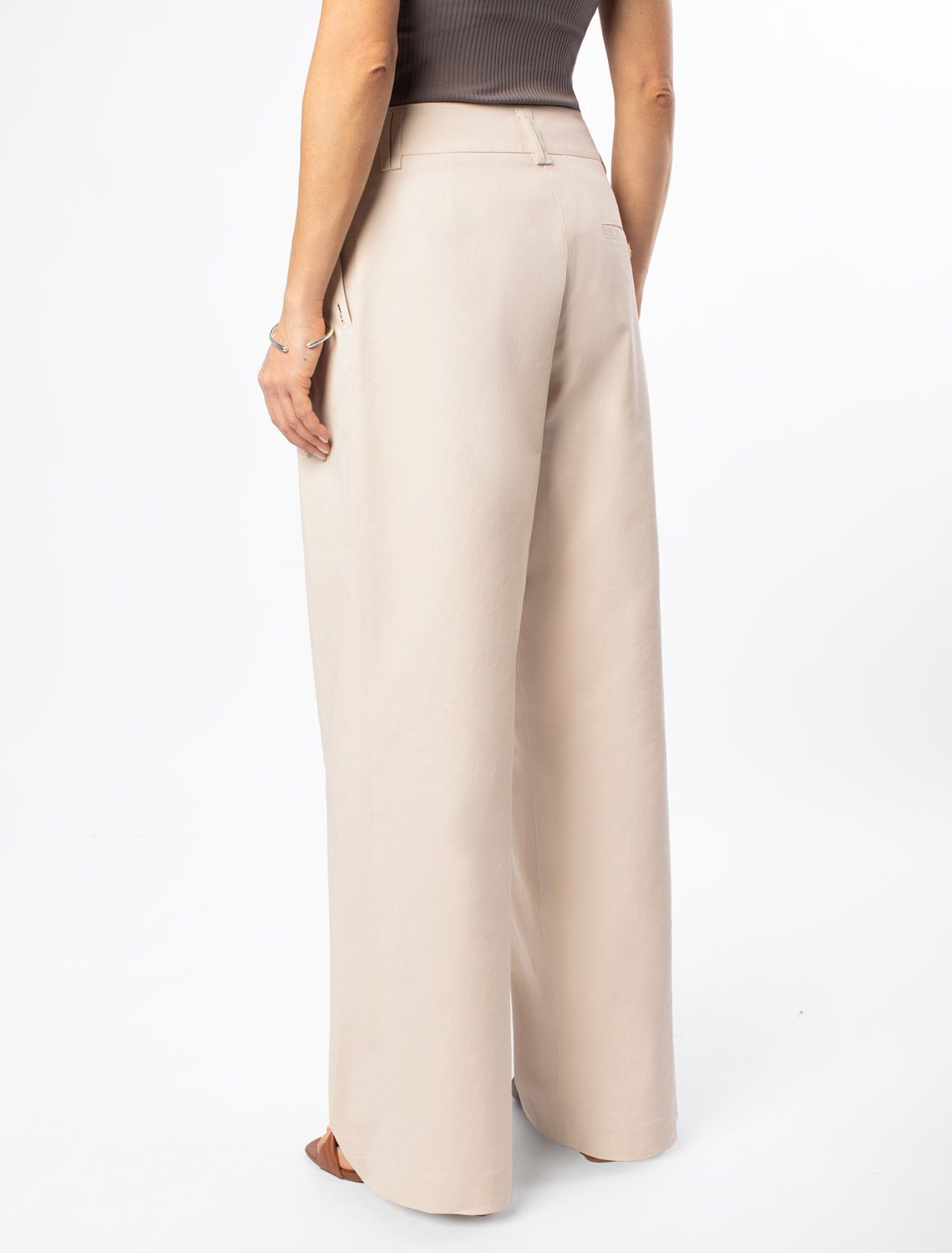 Брюки-палаццо из хлопка с защипами D24.268 светло-бежевый