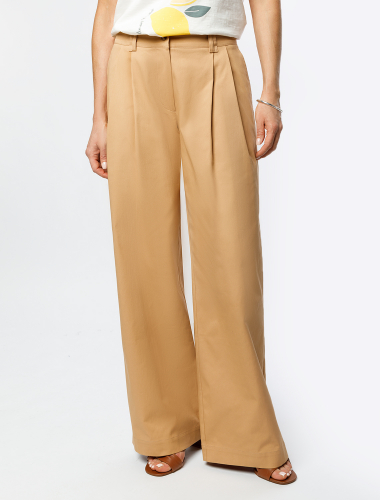 Брюки-палаццо из хлопка с защипами D24.268 темно-бежевый