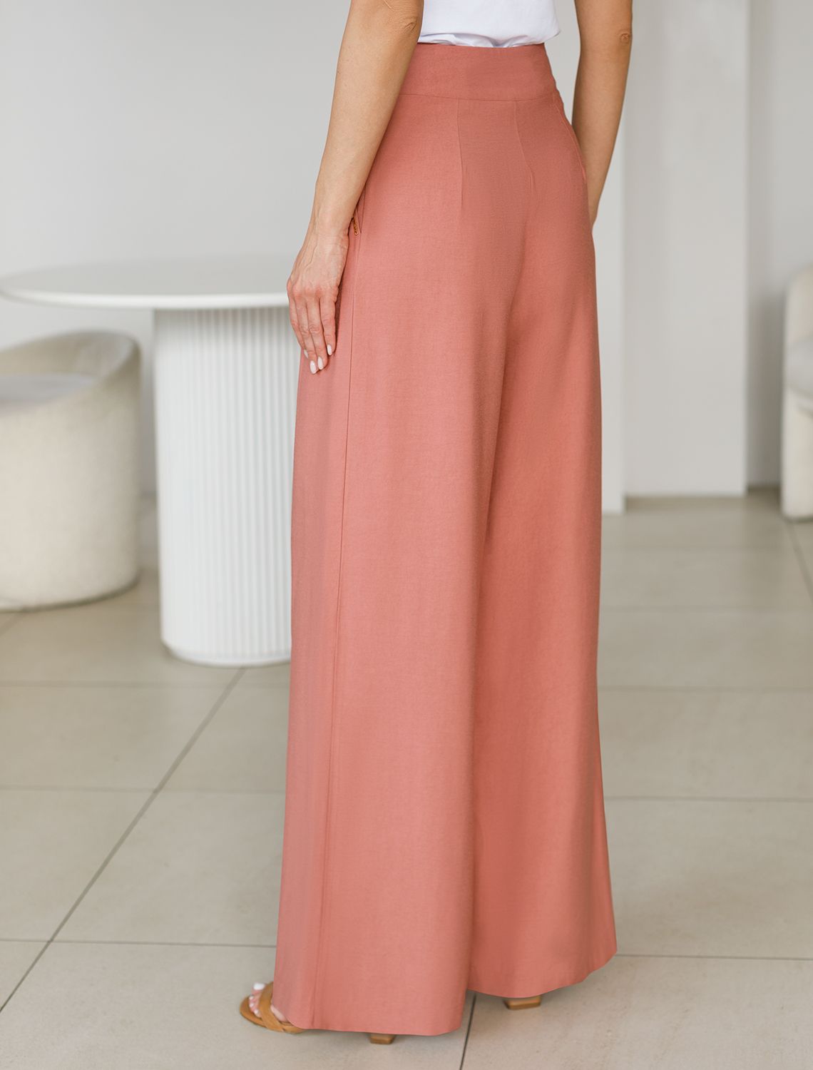 Брюки-палаццо из плотного лиоцелла D24.267 дымчато-коралловый