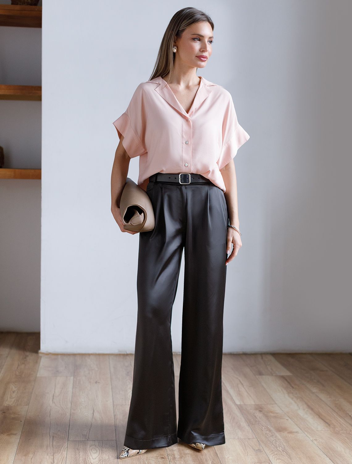 Брюки палаццо широкие из струящегося сатина