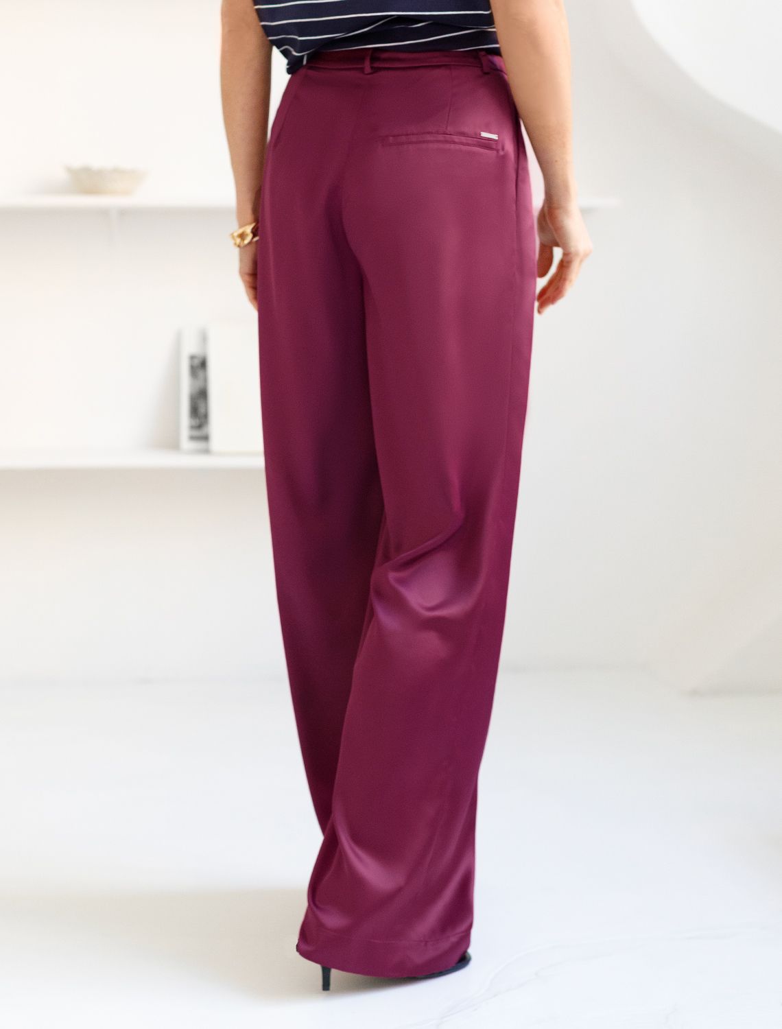 Брюки палаццо широкие из струящегося сатина D24.304 бургунди