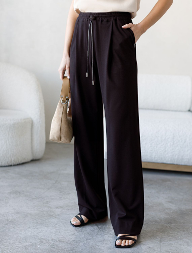 Брюки палаццо в полоску из легкого хлопкового поплина D24.298 молочный-синий