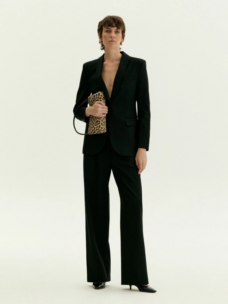 Стильные брюки в чёрном цвете разнообразят повседневные образы. Модель полной длины с высокой посадкой отличают застёжка сбоку и защипы по бокам. Предусмотрены шлёвки для ремня. Изделие застёгивается на молнию и пуговицу. Брюки выполнены из приятной костюмной ткани с вискозой. Вещь может стать частью капсулы с другими брюками, юбкой и жакетом monk