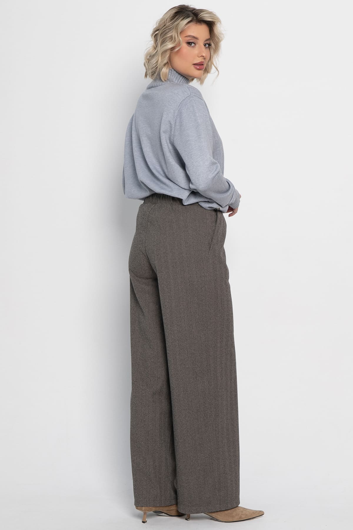Брюки — это не просто одежда на каждый день. Это мощный инструмент, с помощью которого можно выразить себя, подчеркнуть фигуру и почувствовать уверенность. Прямые брюки — идеальный силуэт. Ненавязчивый принт «ёлочка» в брюках позволяет без проблем сочетать изделие практически с любым верхом, будь то водолазка или объемный свитер.
