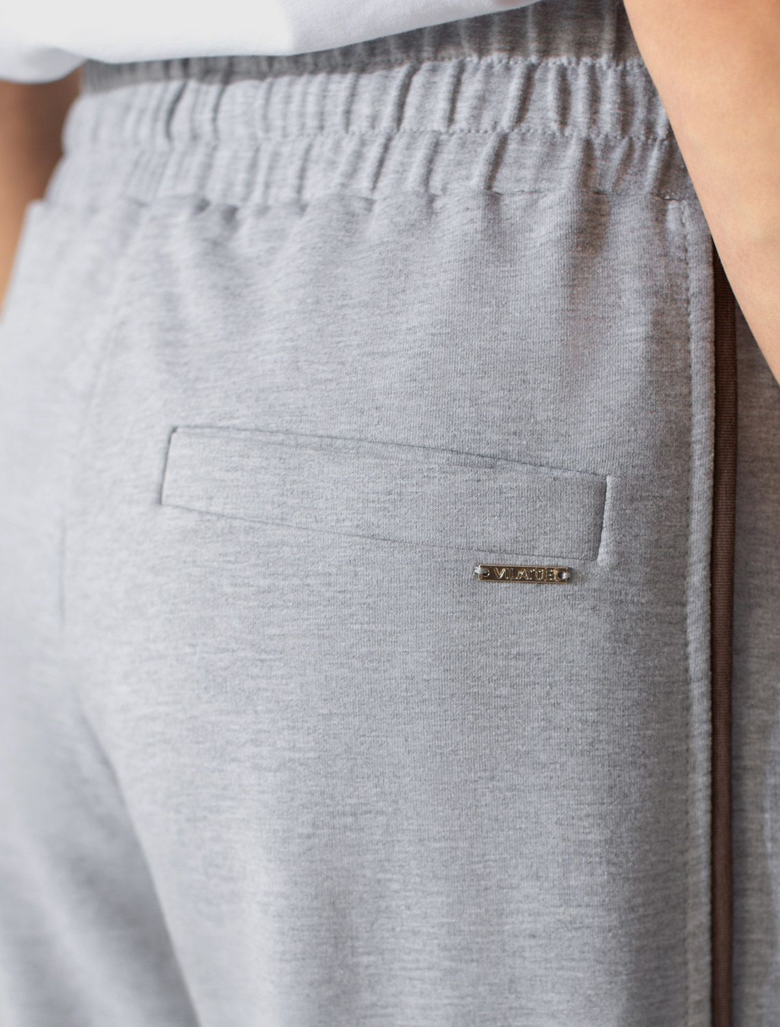 Прямые брюки с лампасами из эластичного футера двухнитки без начеса D44.164 св.серый меланж