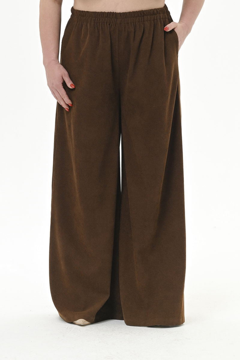 Брюки широкие из вельвета с карманами, цвет "молочный шоколад"
