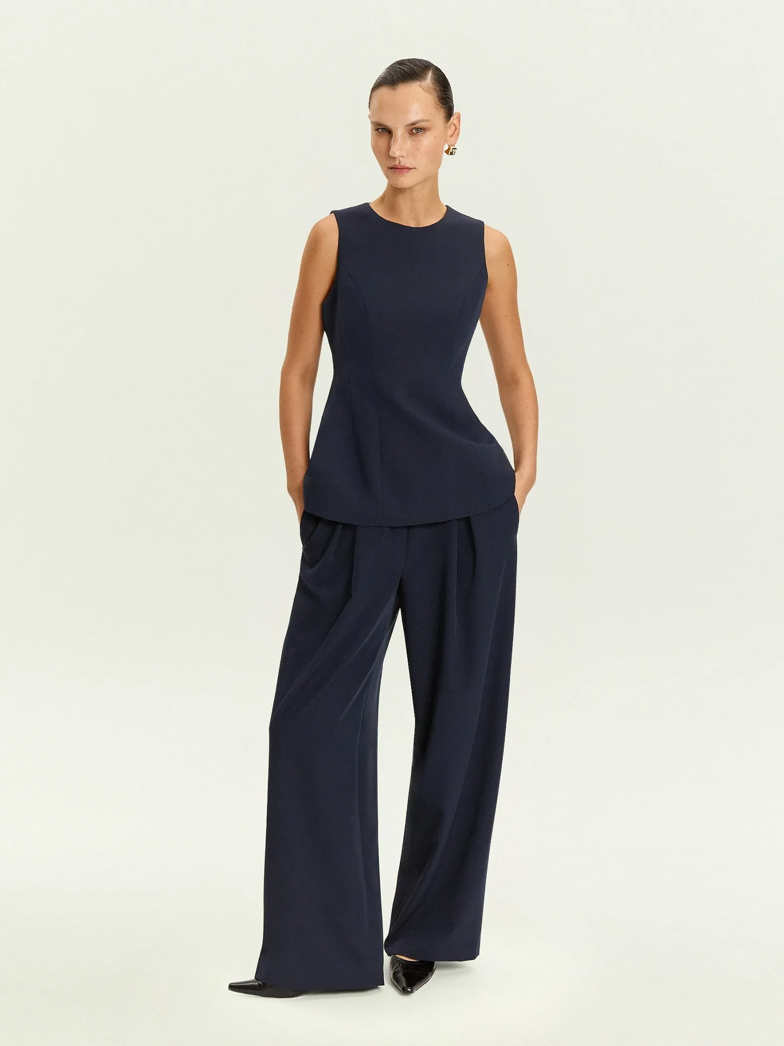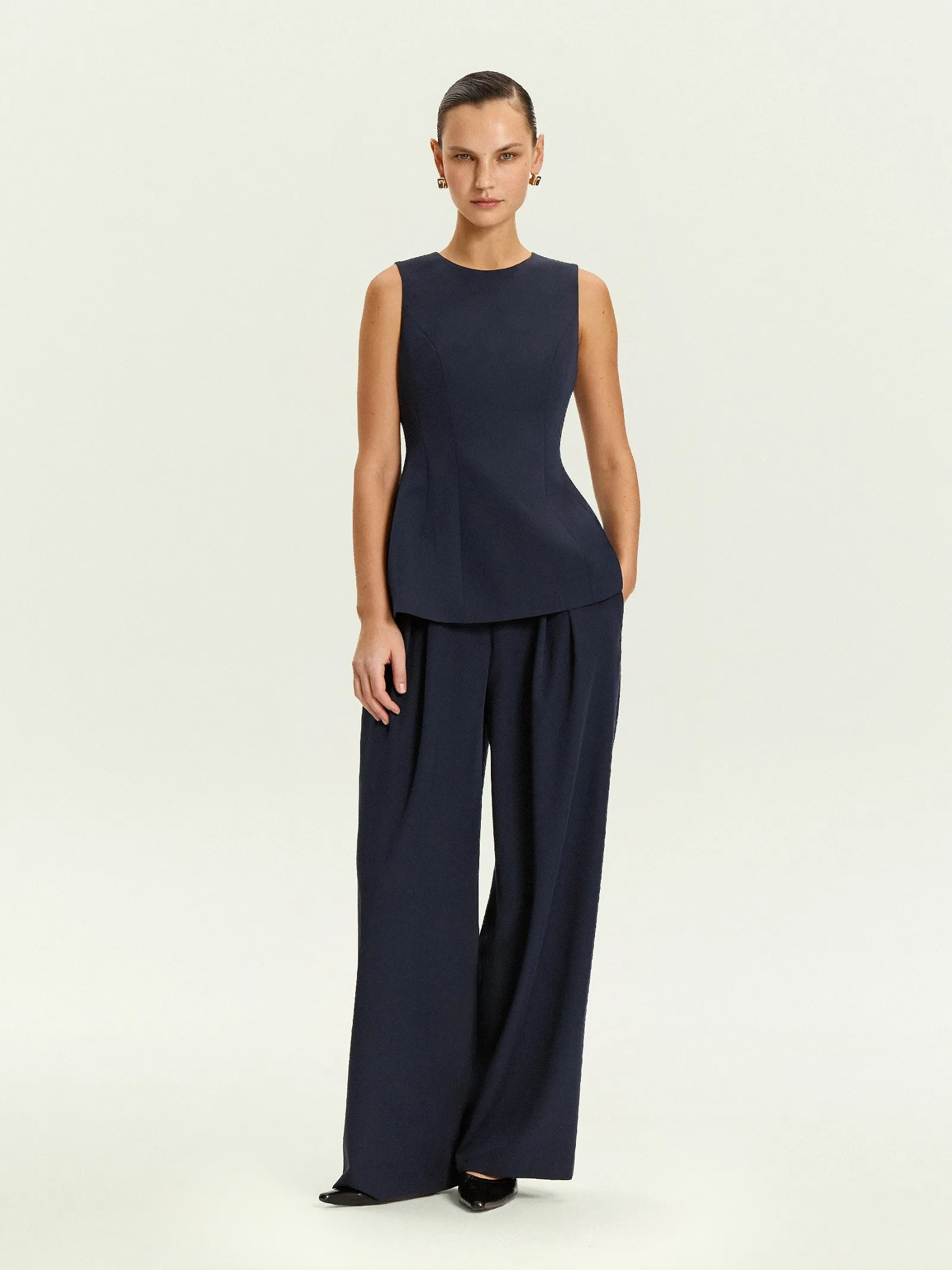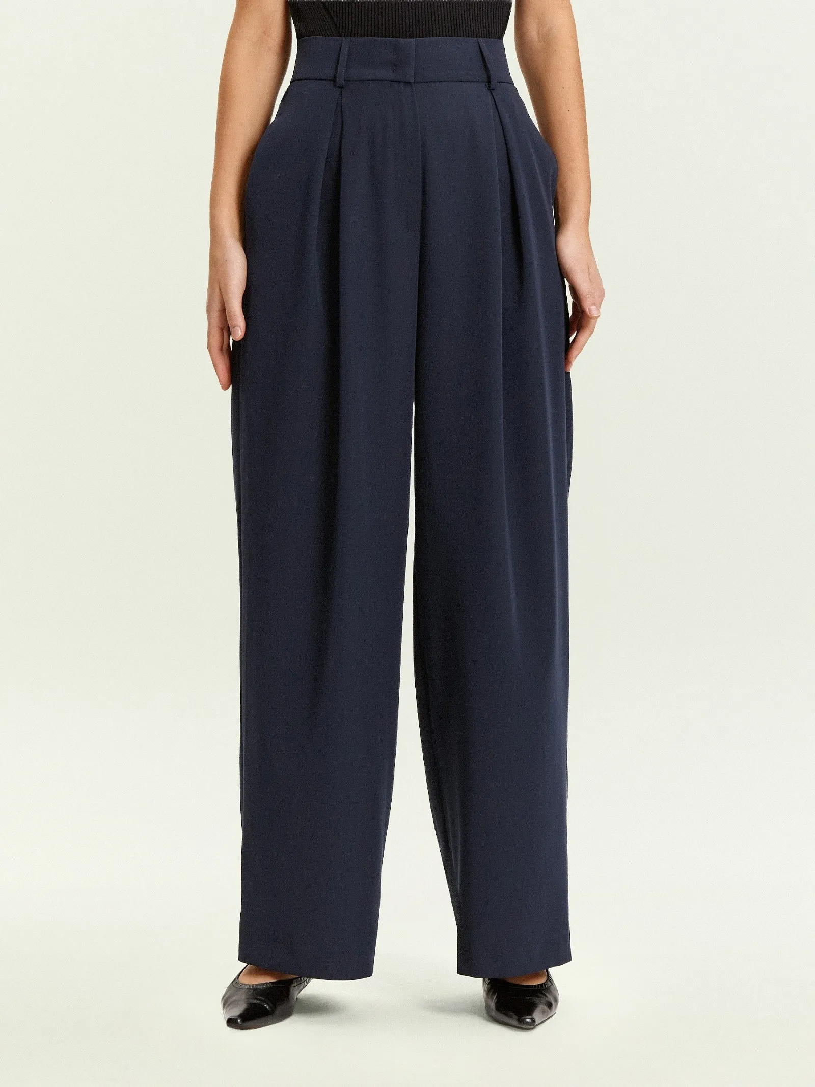 Стильные брюки в тёмно-синем цвете станут основой множества образов для будней и не только.