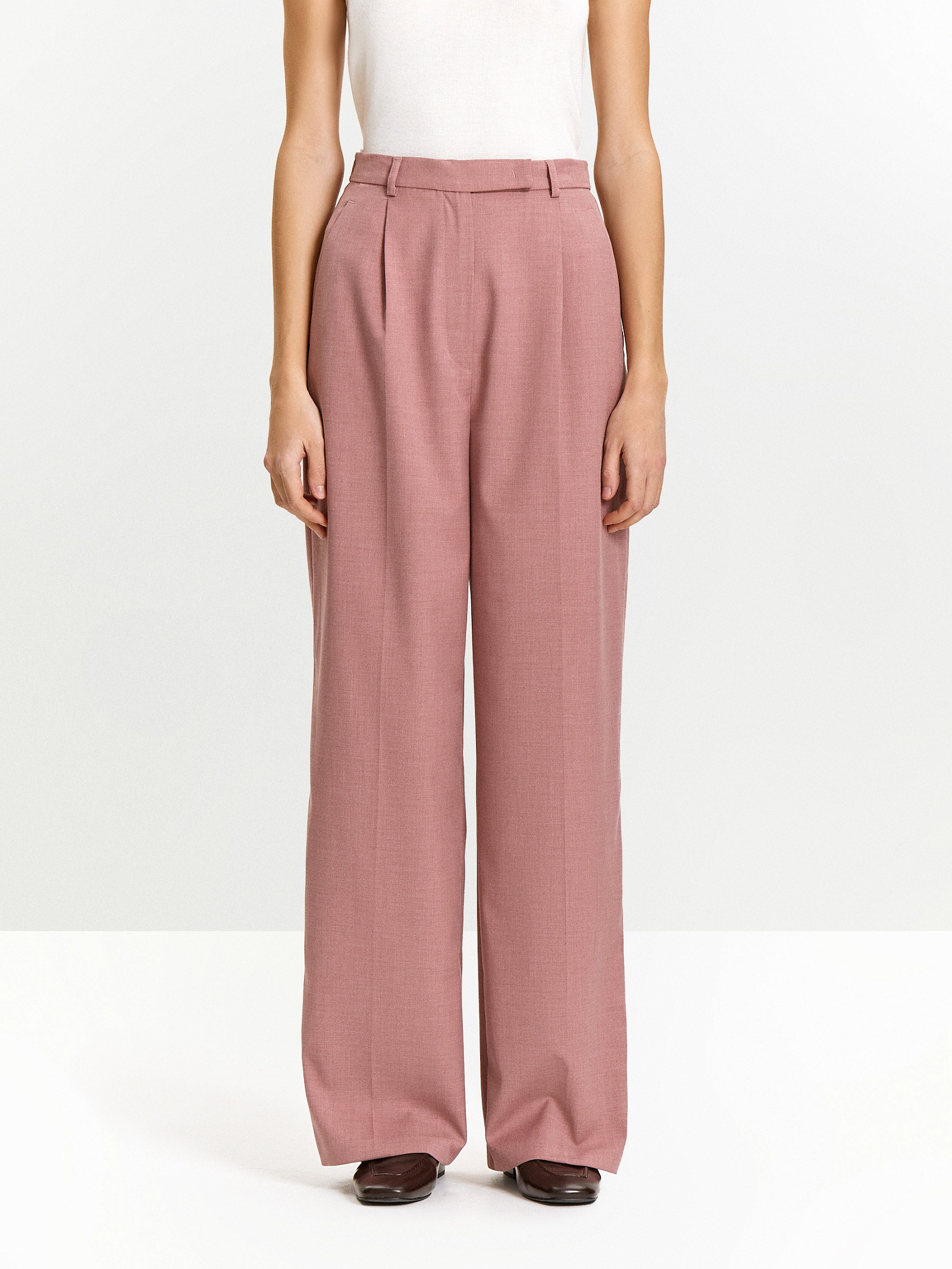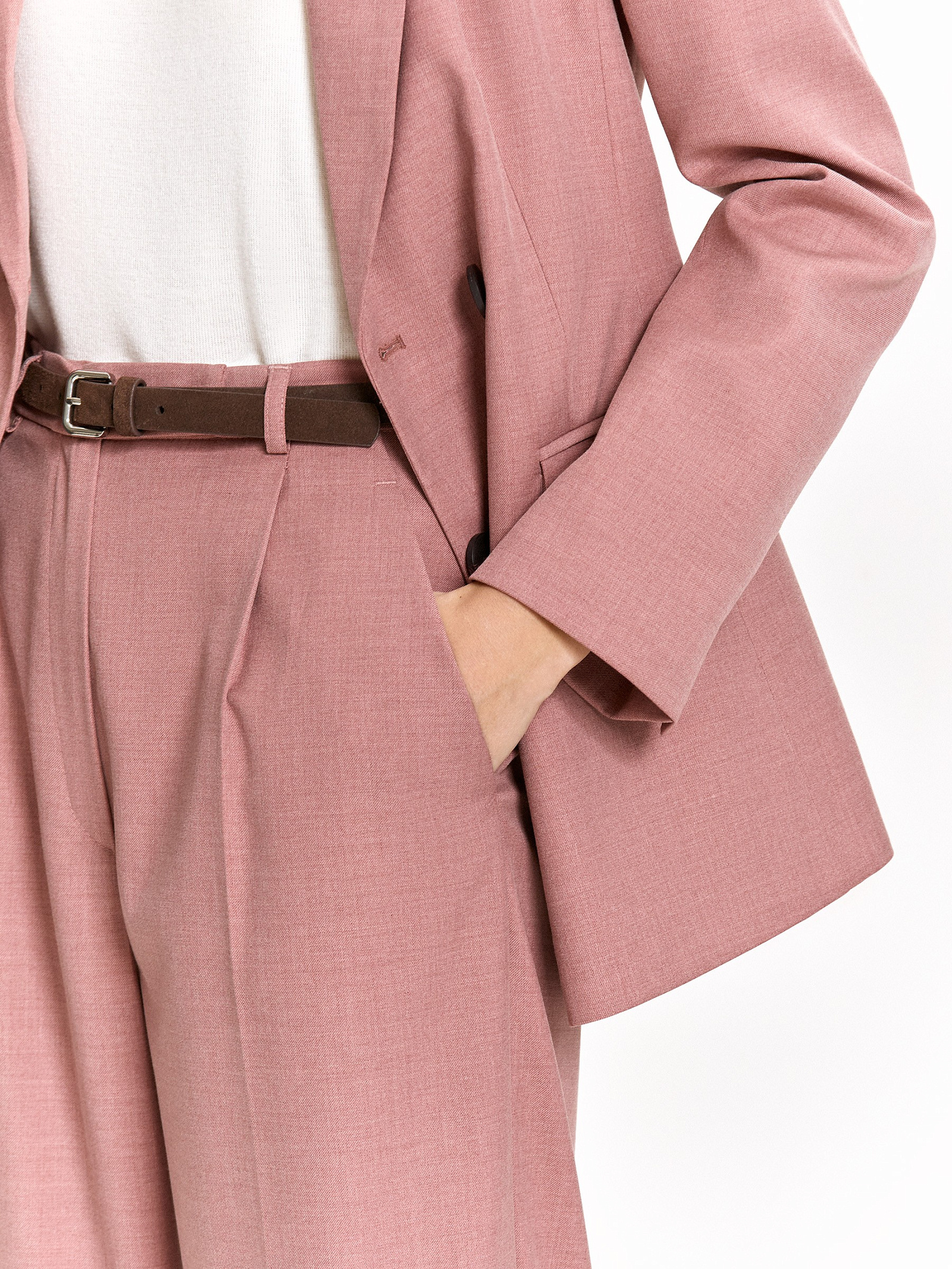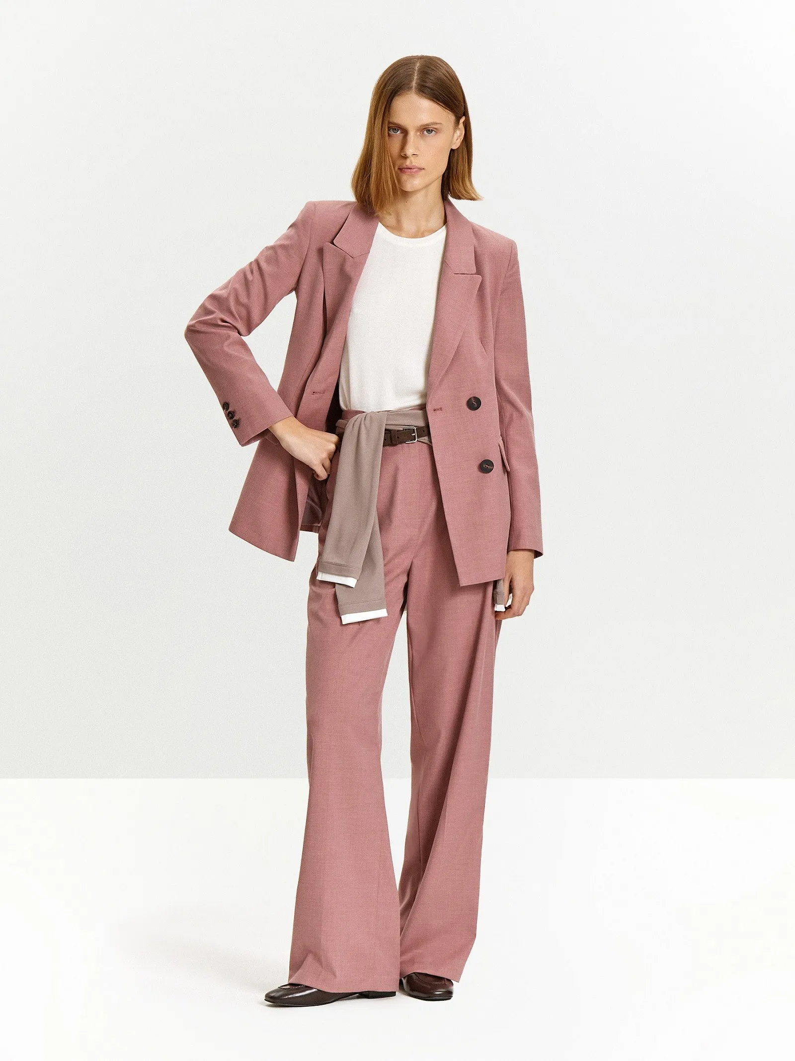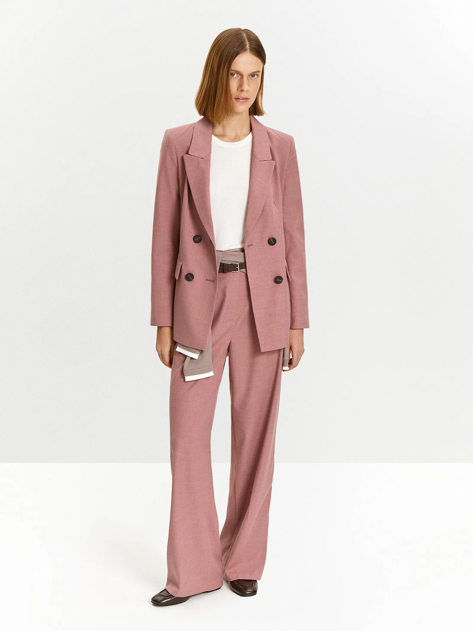 Стильные брюки в оттенке ягодного шербета разнообразят повседневные образы. Модель полной длины с высокой посадкой отличают застёжка сбоку и защипы по бокам. Предусмотрены шлёвки для ремня. Изделие застёгивается на молнию и пуговицу. Брюки выполнены из приятной костюмной ткани с дышащей вискозой и эластаном для лучшей посадки по фигуре. Завершить образ можно жакетом из комплекта.