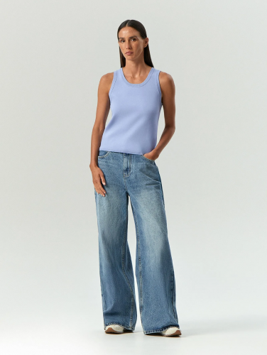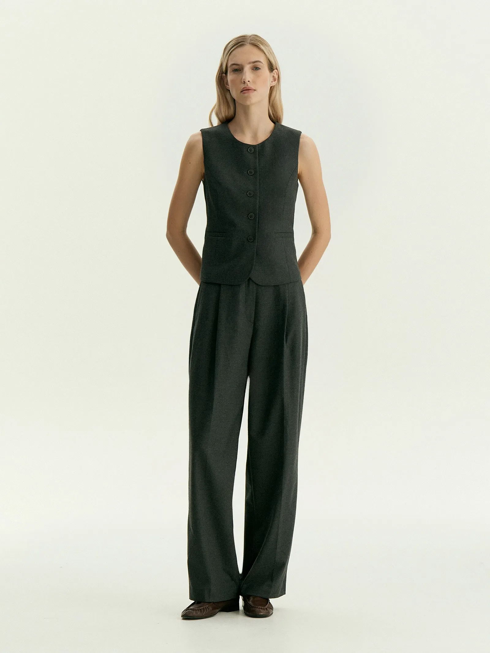 Брюки станут основой множества ансамблей. С ними можно создать и деловой образ, и праздничный. Модель отличают широкий пояс с потайной застёжкой и планкой сбоку, стильная завышенная посадка и широкий крой. Плотная и мягкая костюмная поливискоза не мнётся, хорошо держит форму, при движении ложится красивыми мягкими складками. Изделие выполнено без подкладки. Завершить образ можно жилетом из комплекта или женственной атласной блузой.