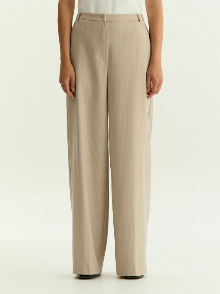 Брюки широкого кроя в полоску , 63% полиэстер, 35% вискоза, 2% эластан ,