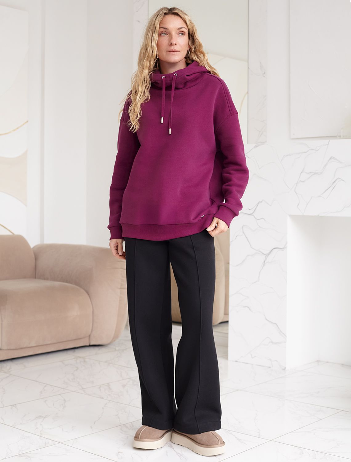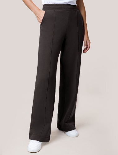 Эти уютные брюки практичного черного цвета созданы для вашего комфорта. Свободный прямой крой обеспечивает свободу движений и максимальное удобство в любых ситуациях, поэтому они подойдут и на большие размеры, а так же на высокий или низкий рост. Фигура подчеркивается, а силуэт визуально вытягивается за счет кроя палаццо и застроченных декоративных стрелок.