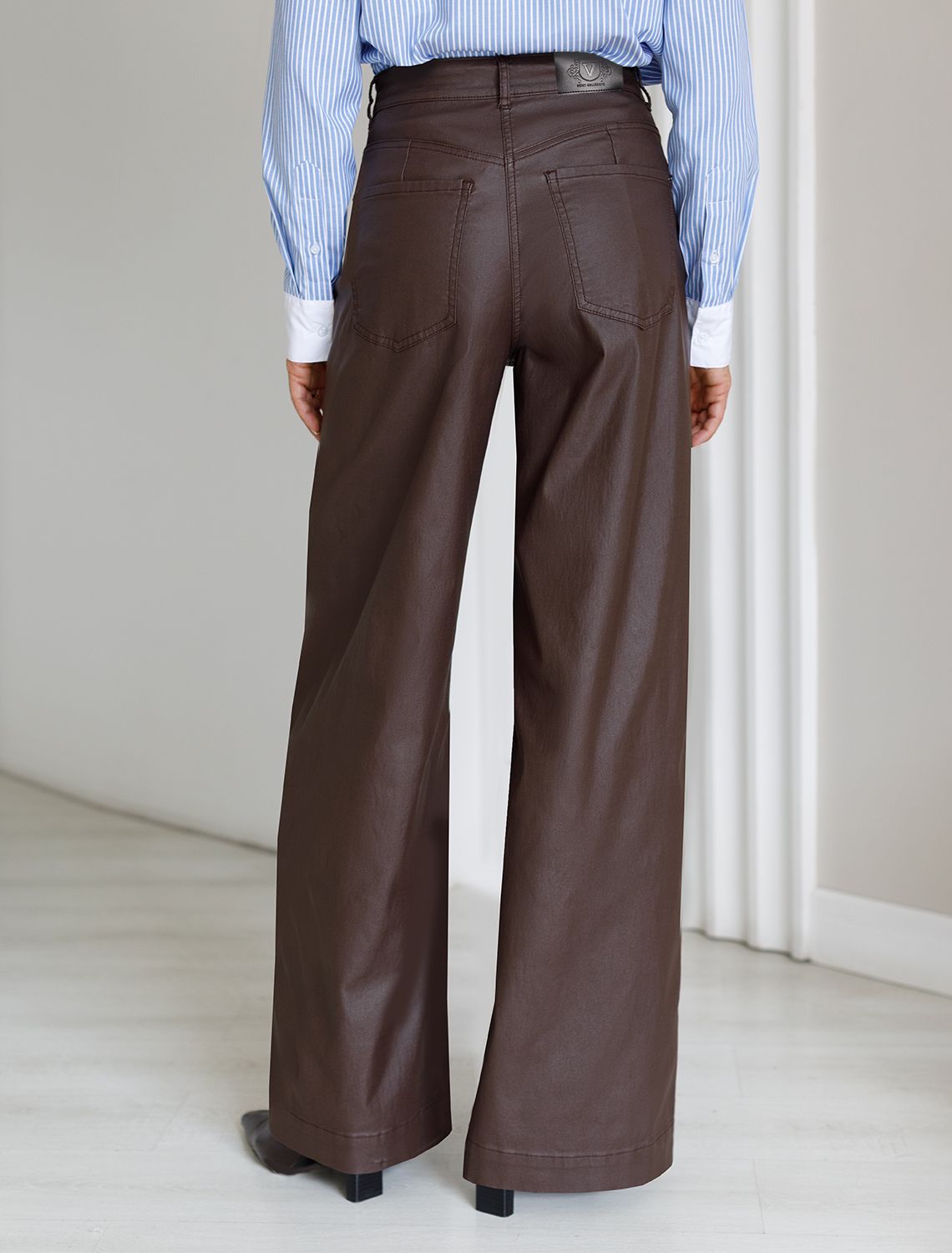 Брюки-трубы из эластичного хлопка с эффектом кожи D24.277 коричневый