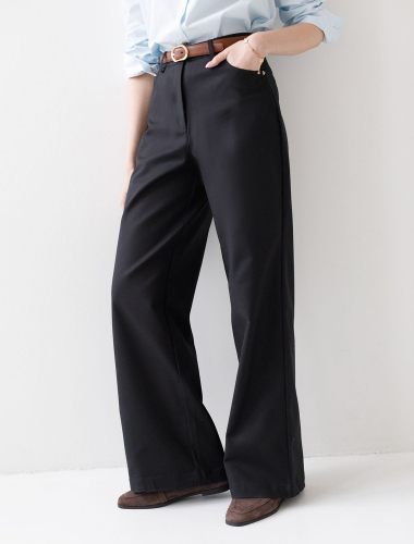 Брюки-трубы выполнены из плотной хлопковой эластичной ткани с добавлением нейлона. Любимая классика делового стиля, которая должна быть в любом гардеробе, так как такая вещь практична и многофункциональна. Для особого случая на важной встрече в паре с блузкой или для офисного дресс-кода с топом и жакетом. В повседневной жизни с более неформальным верхом и обувью на высоком или низком каблуке.