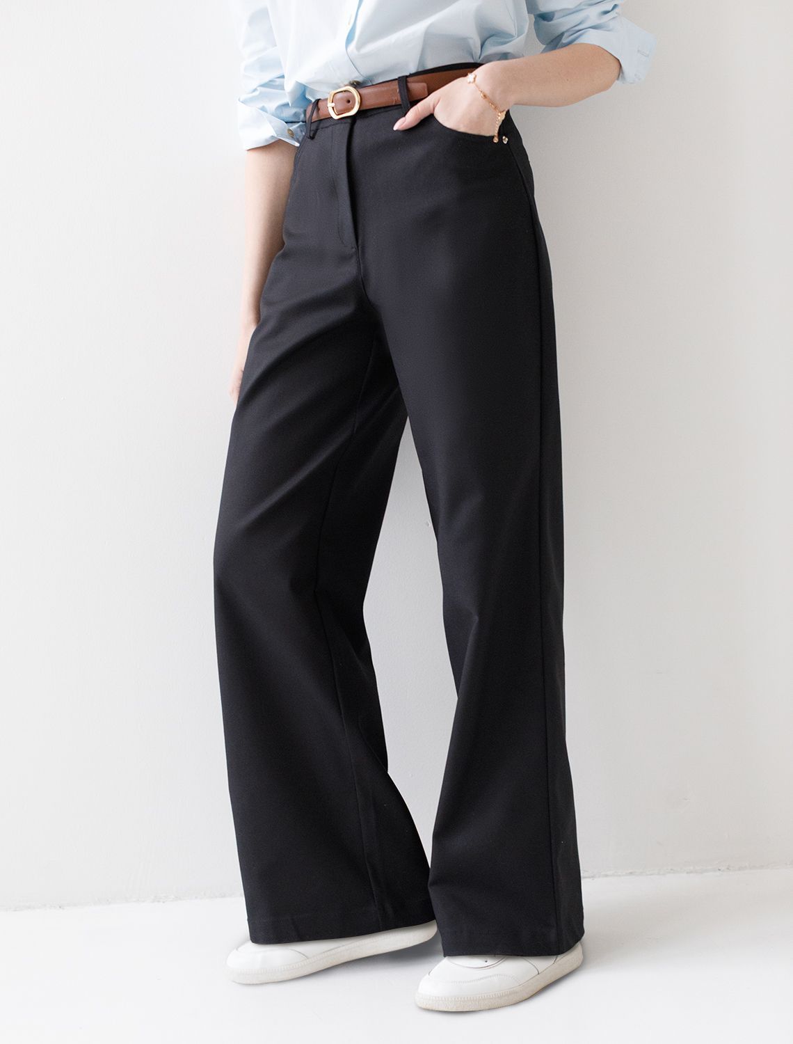 Брюки-трубы выполнены из плотной хлопковой эластичной ткани с добавлением нейлона. Любимая классика делового стиля, которая должна быть в любом гардеробе, так как такая вещь практична и многофункциональна. Для особого случая на важной встрече в паре с блузкой или для офисного дресс-кода с топом и жакетом. В повседневной жизни с более неформальным верхом и обувью на высоком или низком каблуке. черный