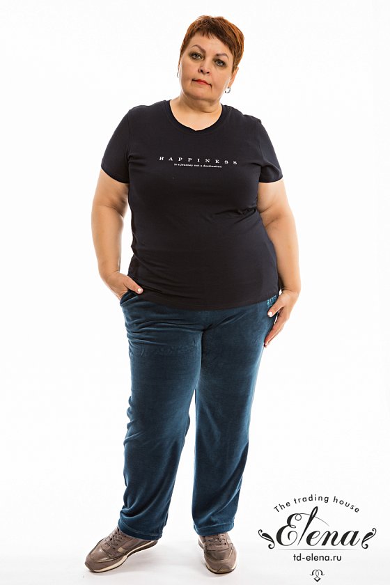Брюки женские классического кроя из однотонного велюра. С боковыми карманами и притачным поясом на резине. С левой стороны вышивка.