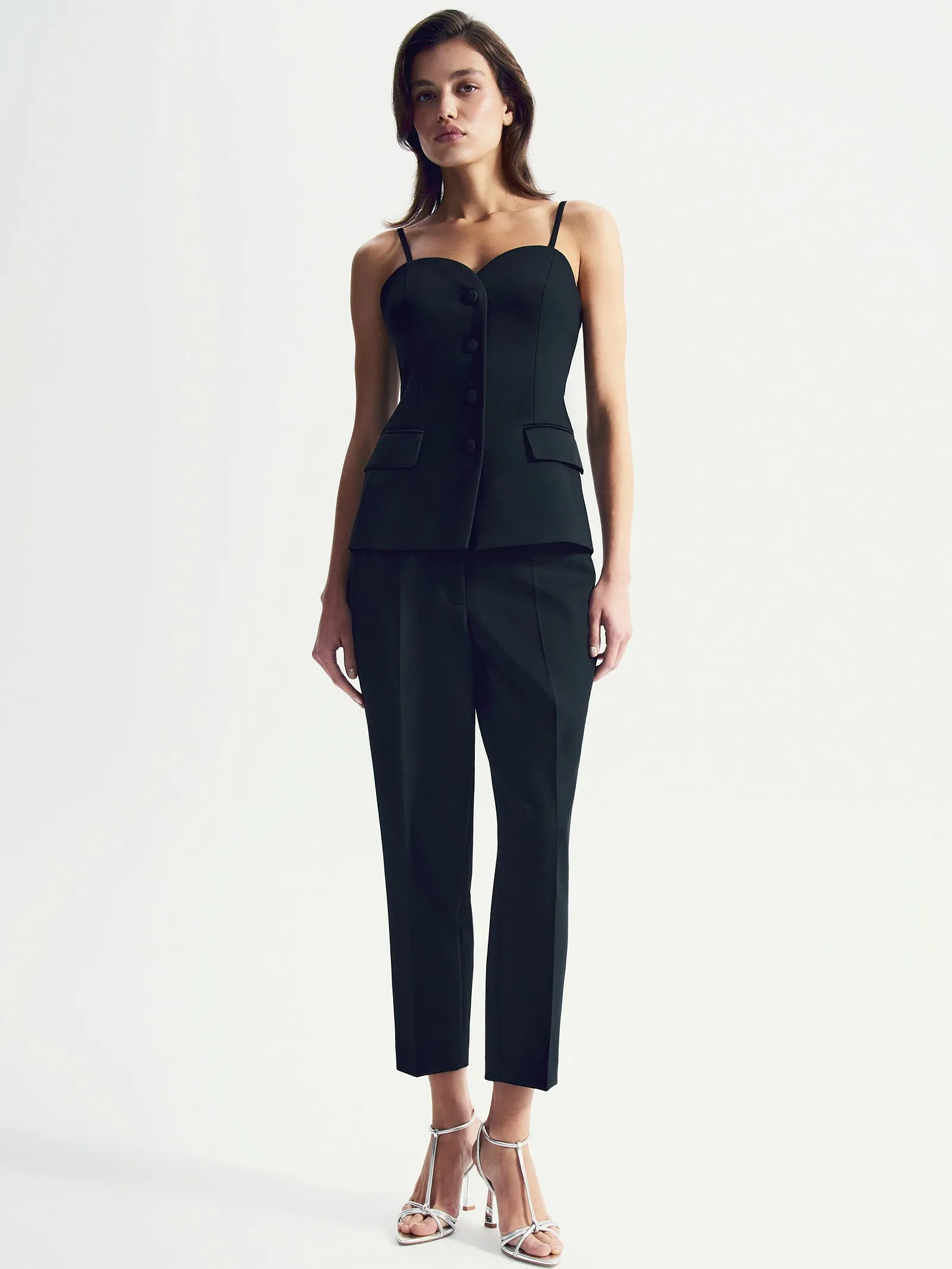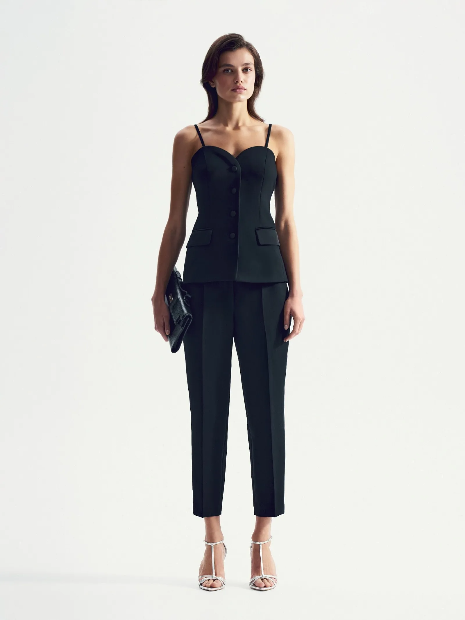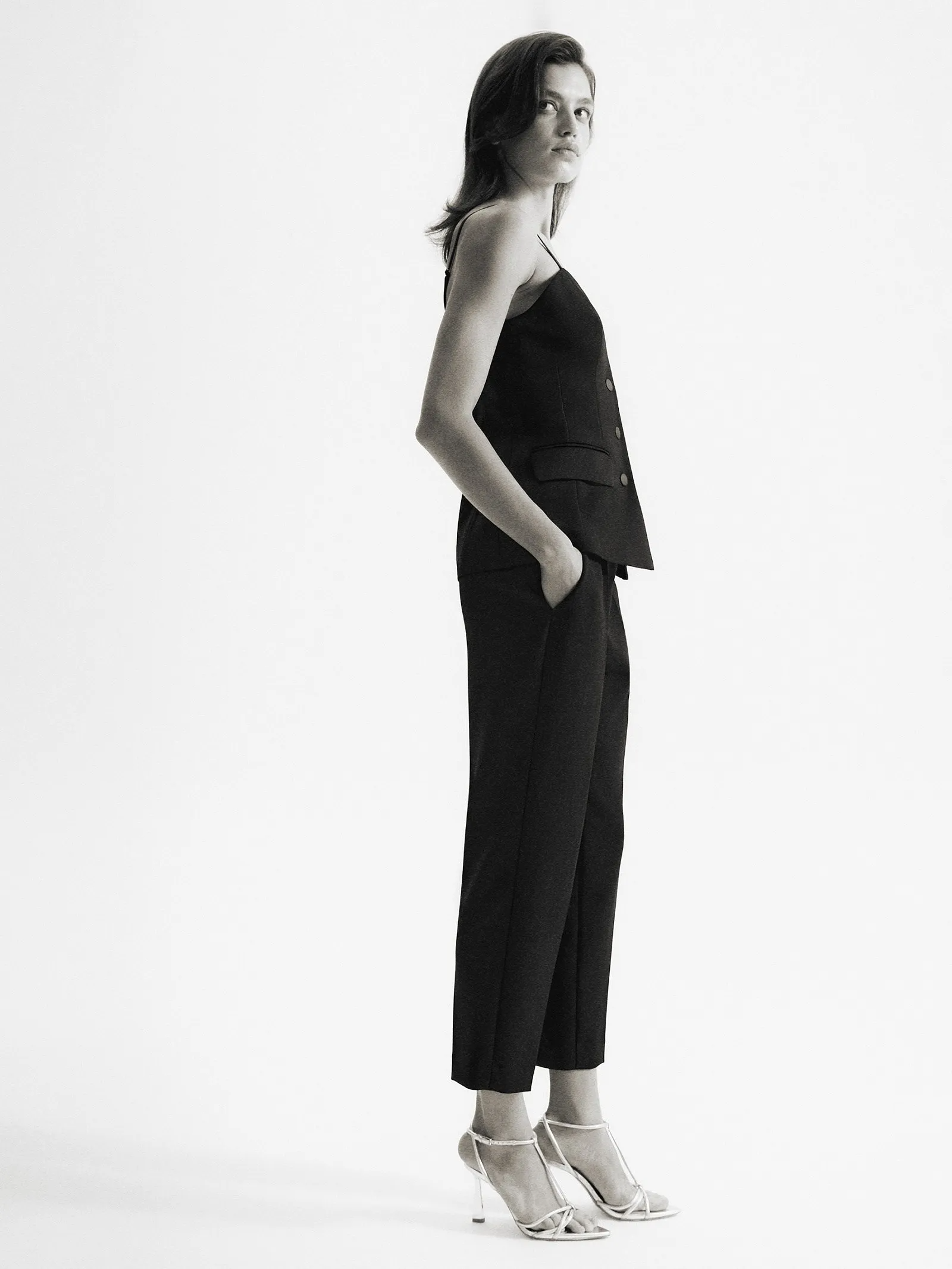 Завершить образы с брюками можно корсетным топом или жакетом из линейки pioma.