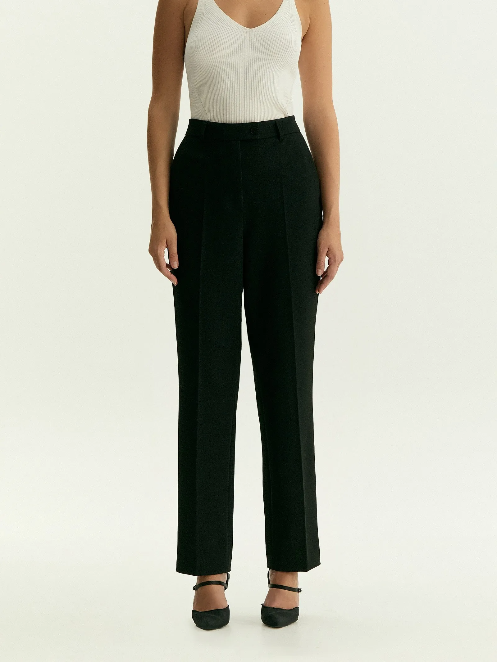 Брюки-дудочки с завышенной посадкой и заутюженными стрелками станут стильным завершением повседневного или коктейльного образа.