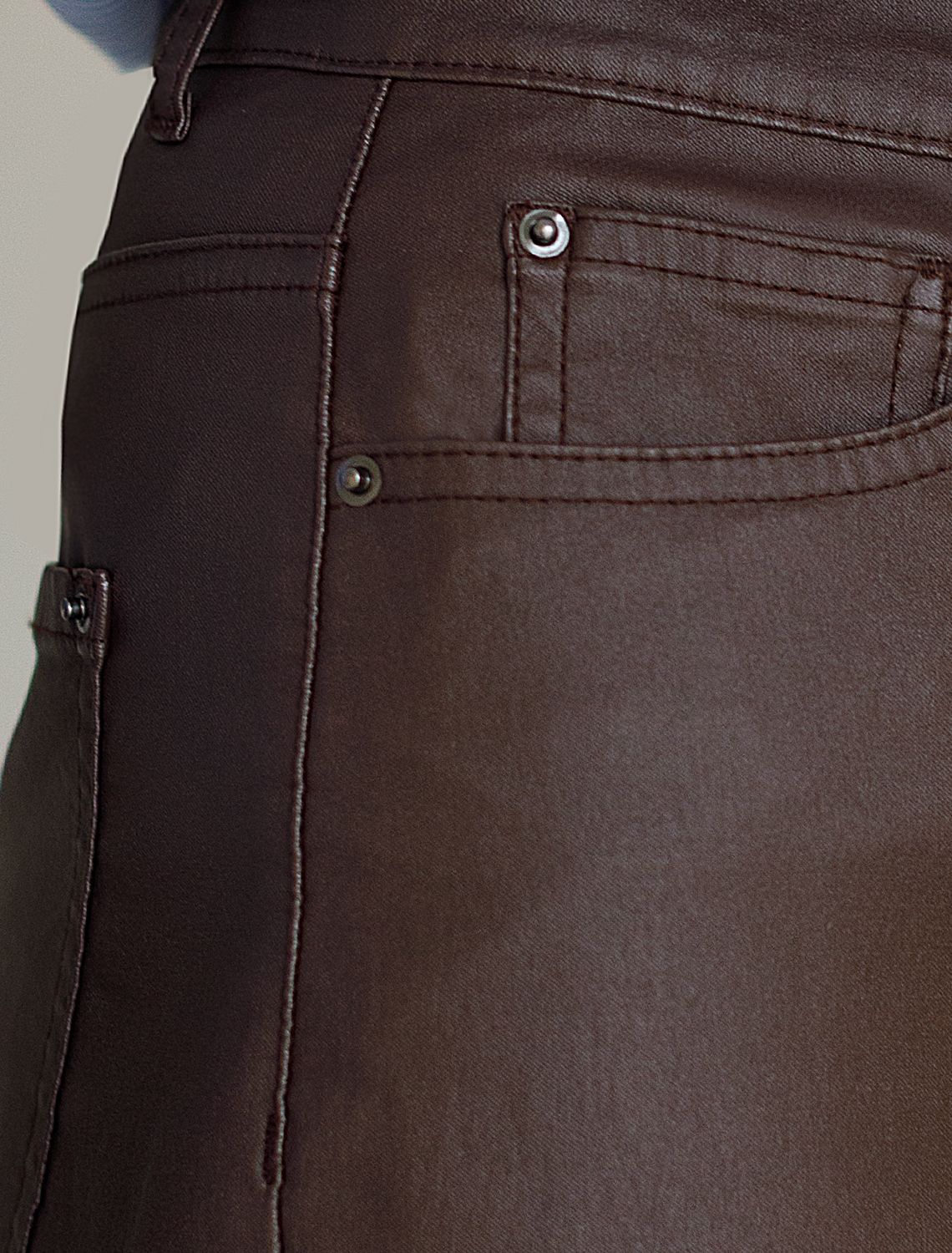 Брюки зауженные из эластичного хлопка с покрытием под кожу